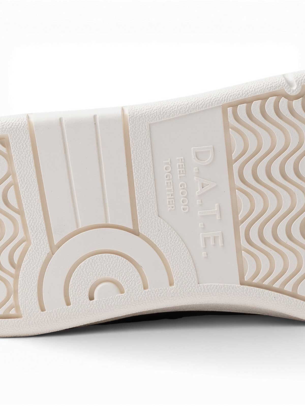D.a.t.e. court 2.0 vintage calf ivory, low sneaker made of ivory nappa leather with matching suede inserts and platinum laminated leather. the court 2.0 vintage model combines refined materials and distinctive workmanship, maintaining a clean and contemporary line. the perforated toe promotes breathability, while the writing d.a.t.e. is imprinted on the tongue. the cotton laces with decorative beads add a characterizing detail. the code and the square logo are printed on the side. the side band and rear heel tab in white shiny leather define the design with a refined contrast. the semi-transparent rubber sole, stitched and 3 cm high, completes the structure, together with the internal insole raised by 2.5 cm for optimal comfort. all selected materials are made in Italy. regular fit., nappa leather upper with suede and platinum laminated leather inserts, perforated toe, d.a.t.e writing. imprinted on the tongue cotton laces with decorative beads code and square logo imprinted on the side side band in white shiny leather rear heel tab in white shiny leather lining in leather and cotton terry lining 2.5 cm raised internal insole semi-transparent rubber sole stitched 3 cm high regular fit, upper composition: nappa, suede and laminated leather lining: leather and cotton terry sole: rubber