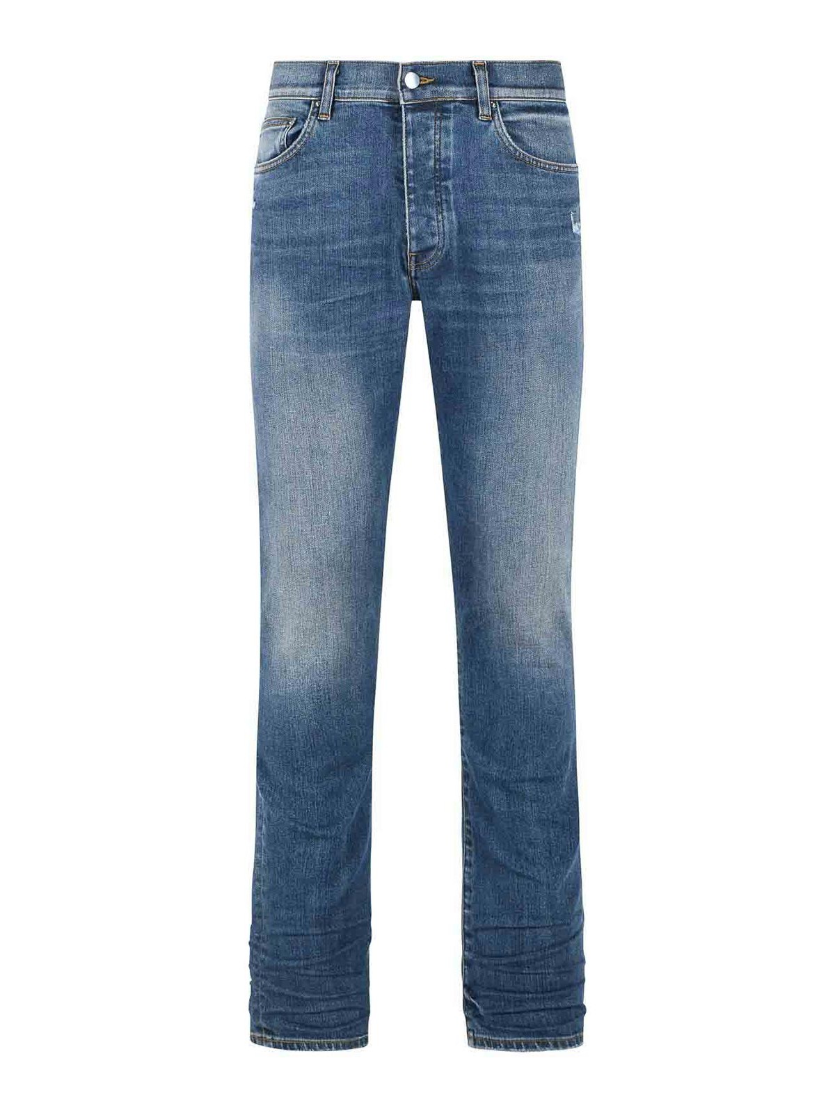 AMIRI: straight leg jeans - Stack Blue Cotton Jeans