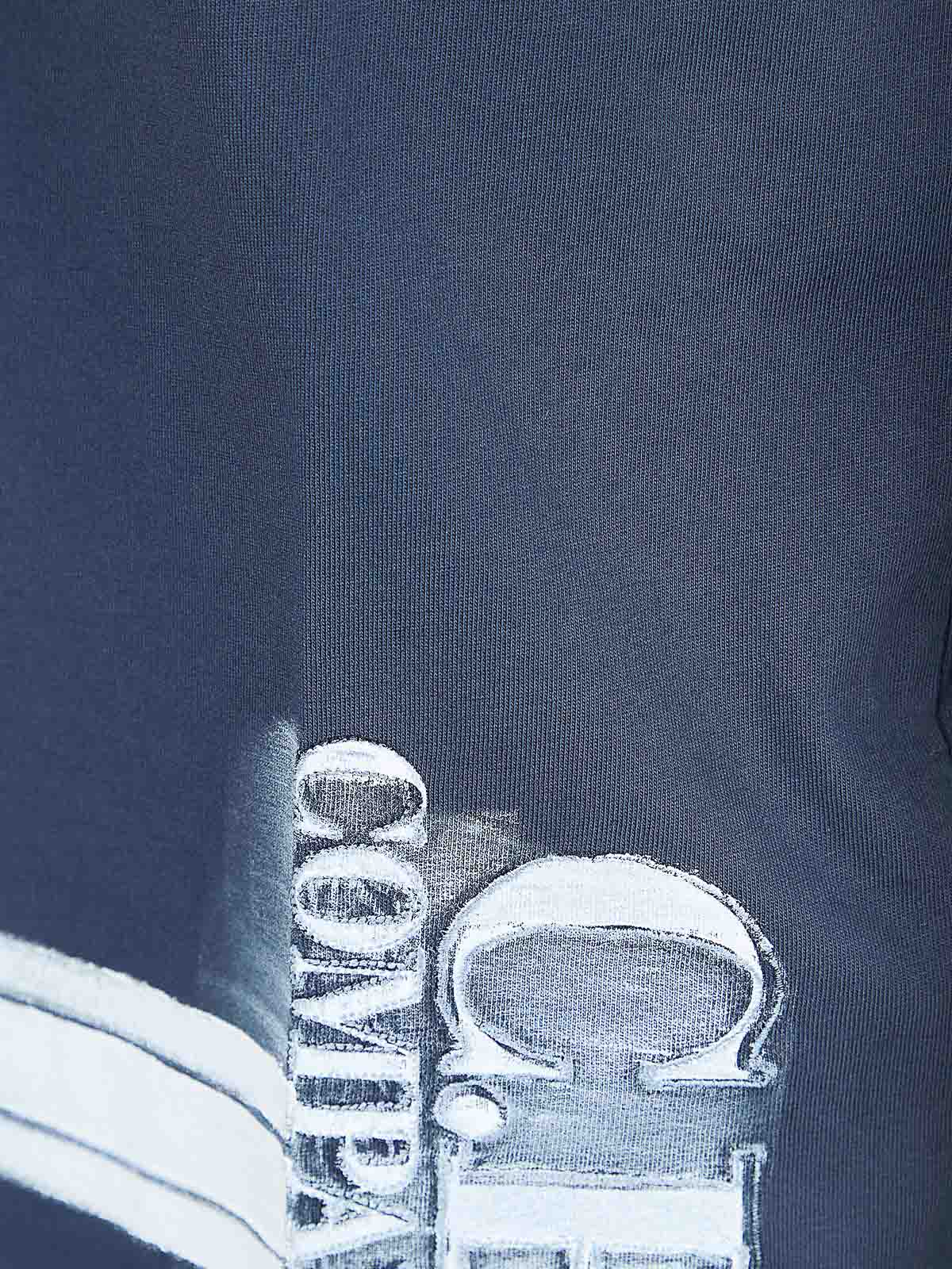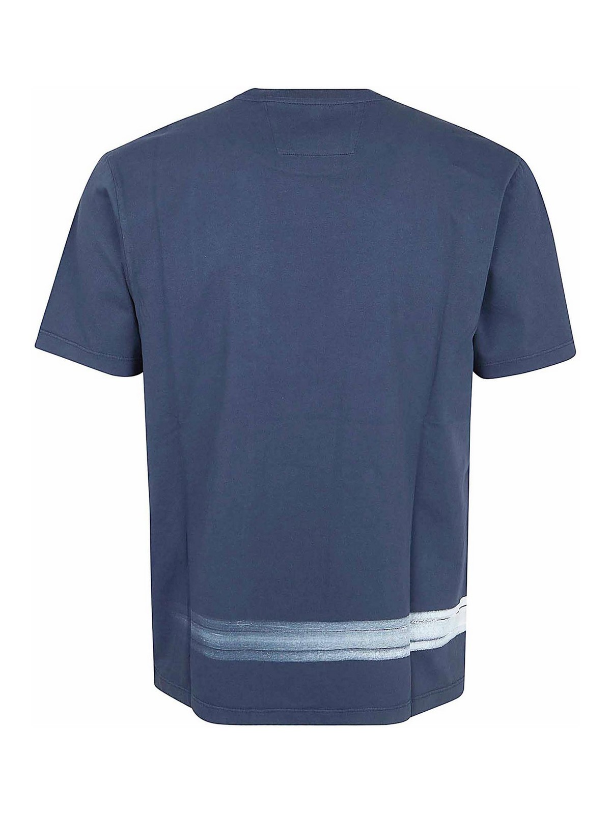 T-shirt in cotton jersey / soft and breathable by cp company short sleeves ribbed crew neck design regular fit characterized by a reserve base on which a hand brush is applied, bringing out the color and highlighting the embroidered writing