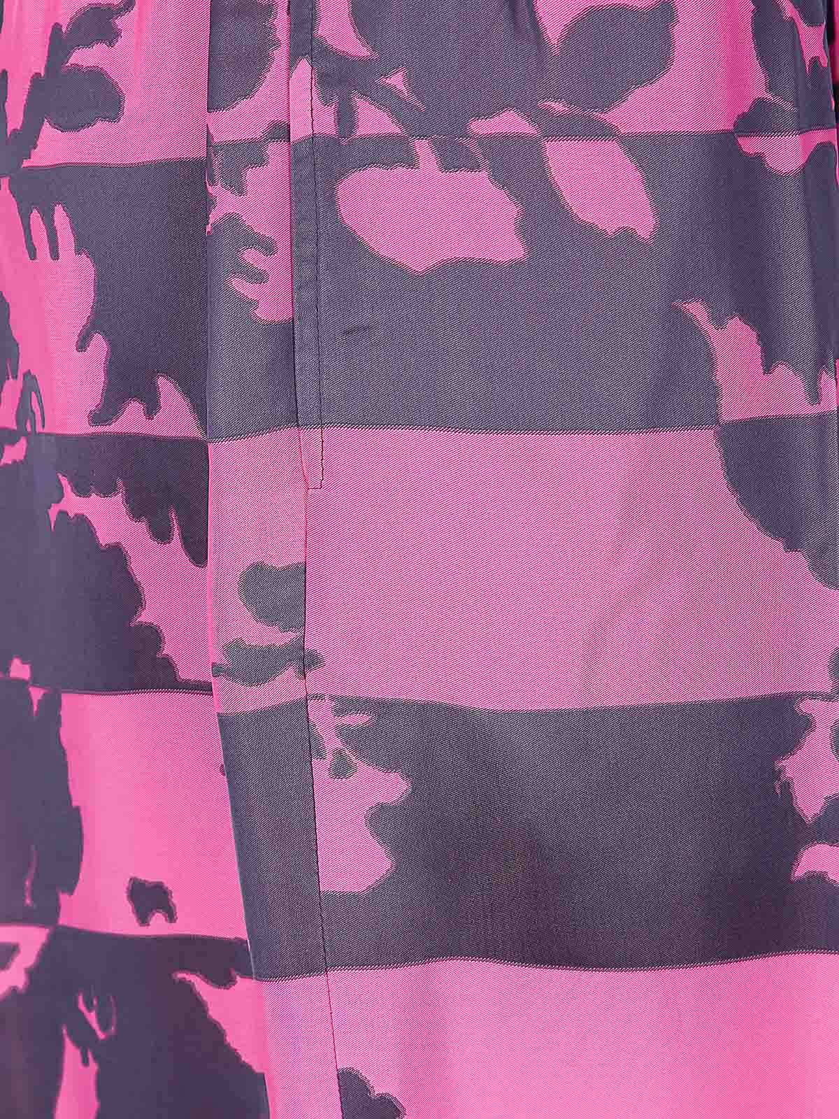Elegant trousers with pleats, light fabric with floral effect print, drawstring waist, straight leg, side pockets.