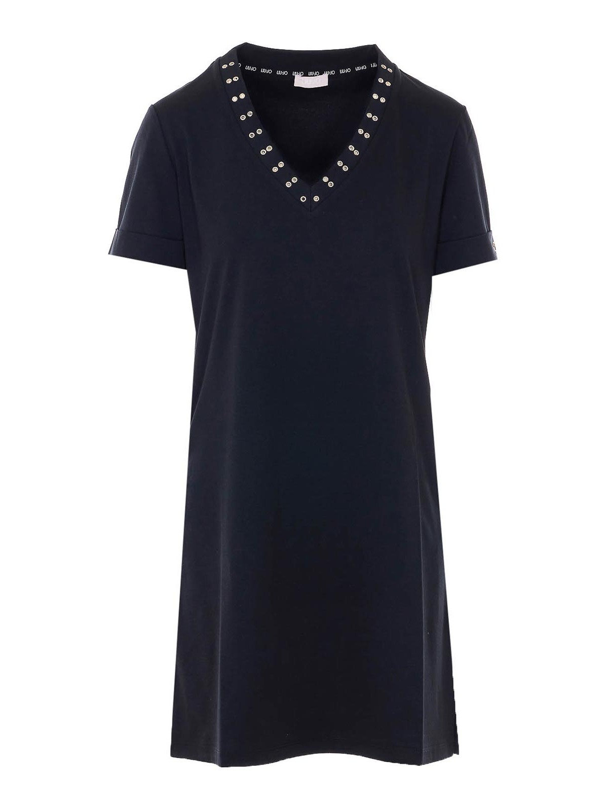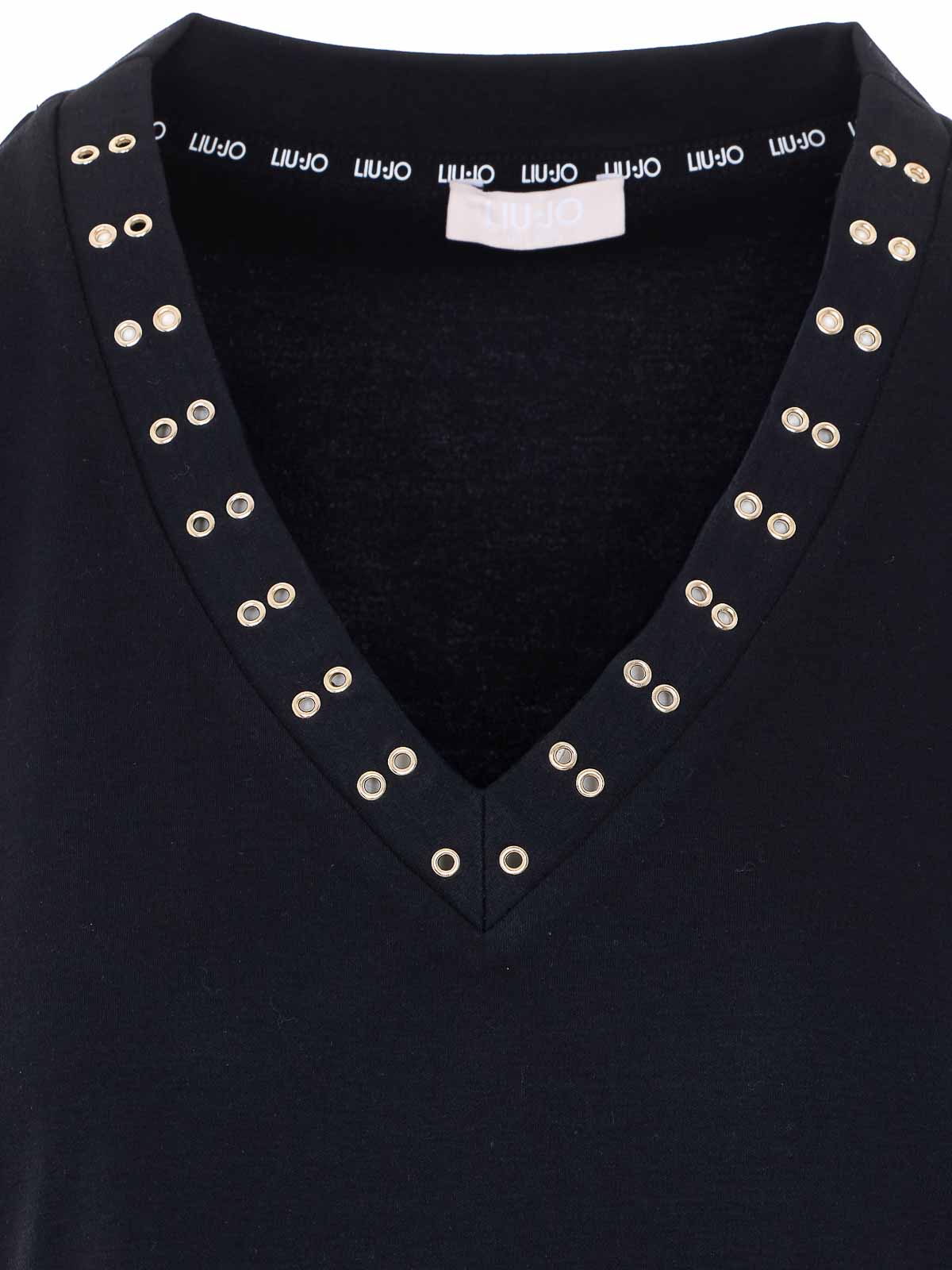 Abito Liu jo nero, scollo a v, dettagli sul colletto, modello mini, maniche corte