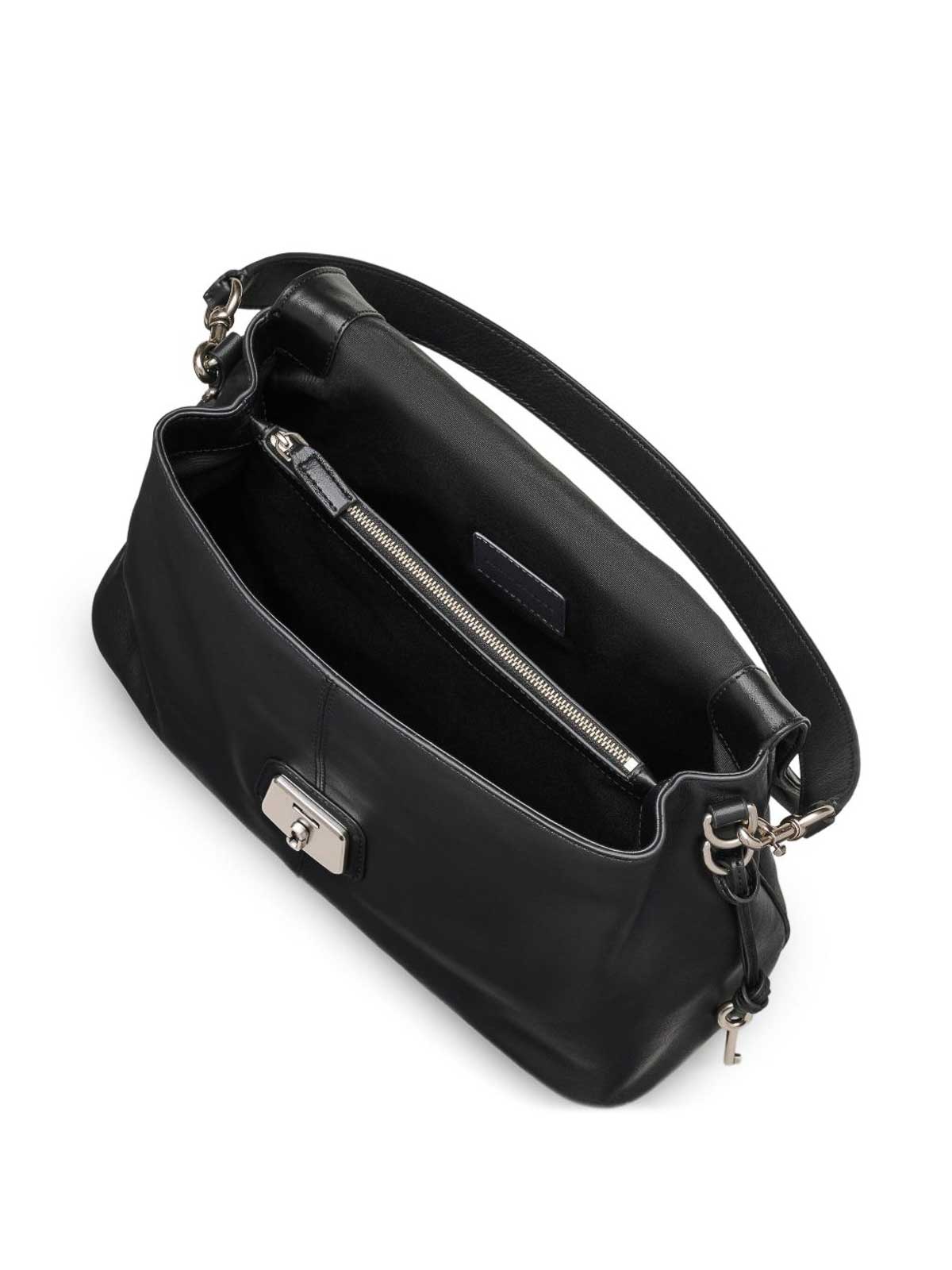 La borsa 'cristina' in pelle nera con accenti argento unisce stile e praticità. è dotata di manico e tracolla removibile, chiusura con fermaglio e tasca interna con zip. viene fornito con un sacchetto per la polvere per la protezione.