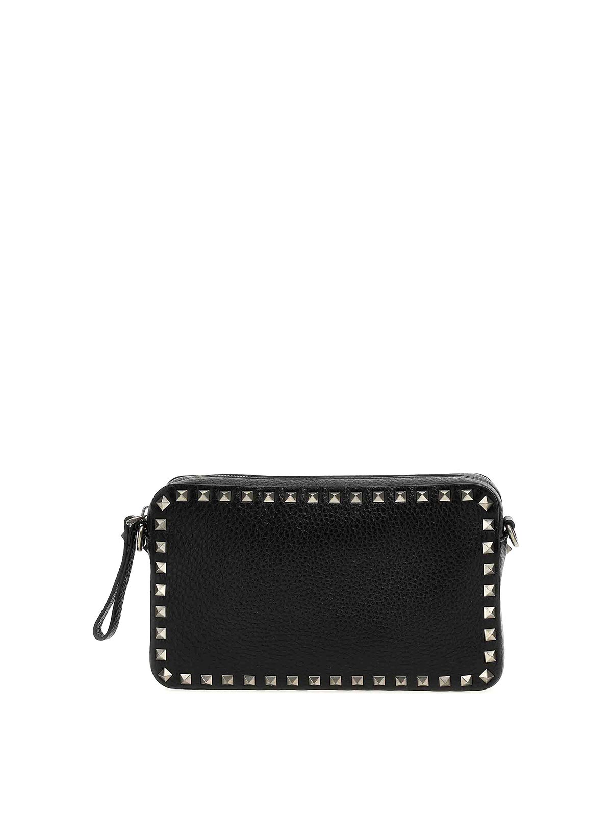 borsa a tracolla 'rockstud' in pelle granata con finiture di borchie in metallo, chiusura con zip, tracolla in tessuto regolabile e removibile.