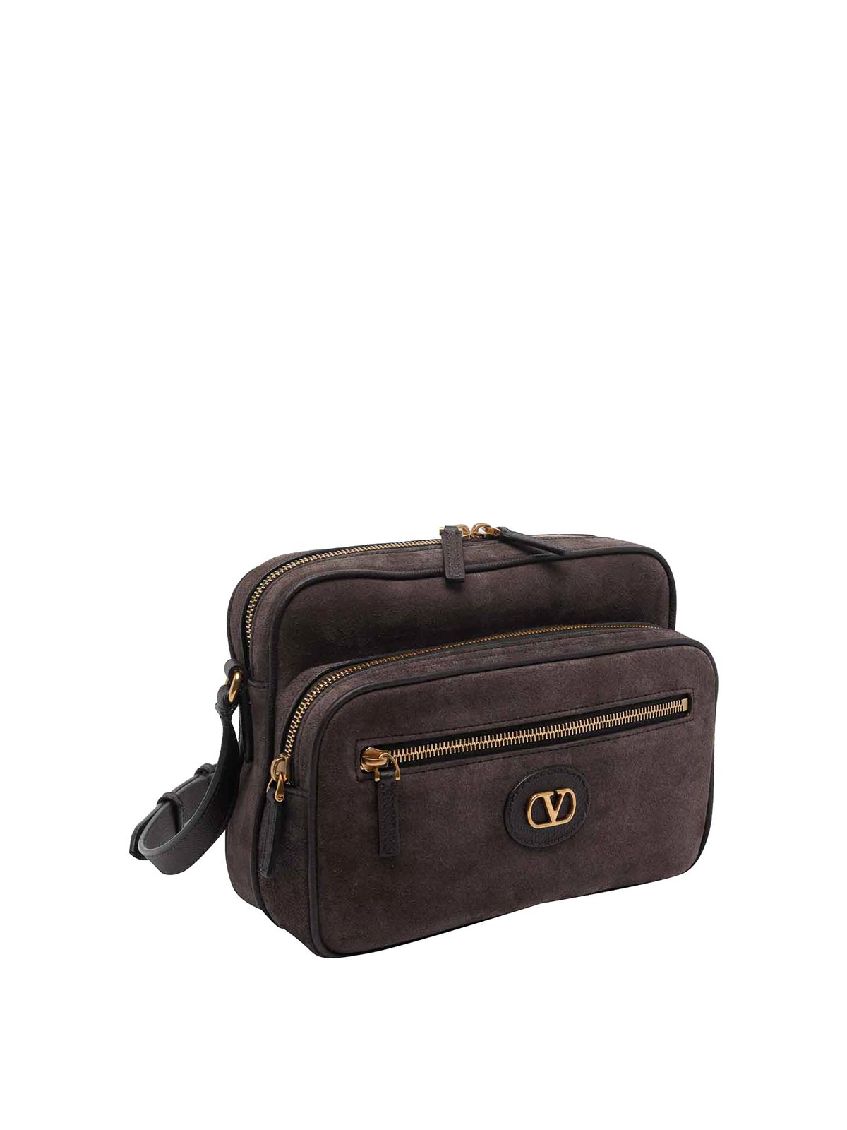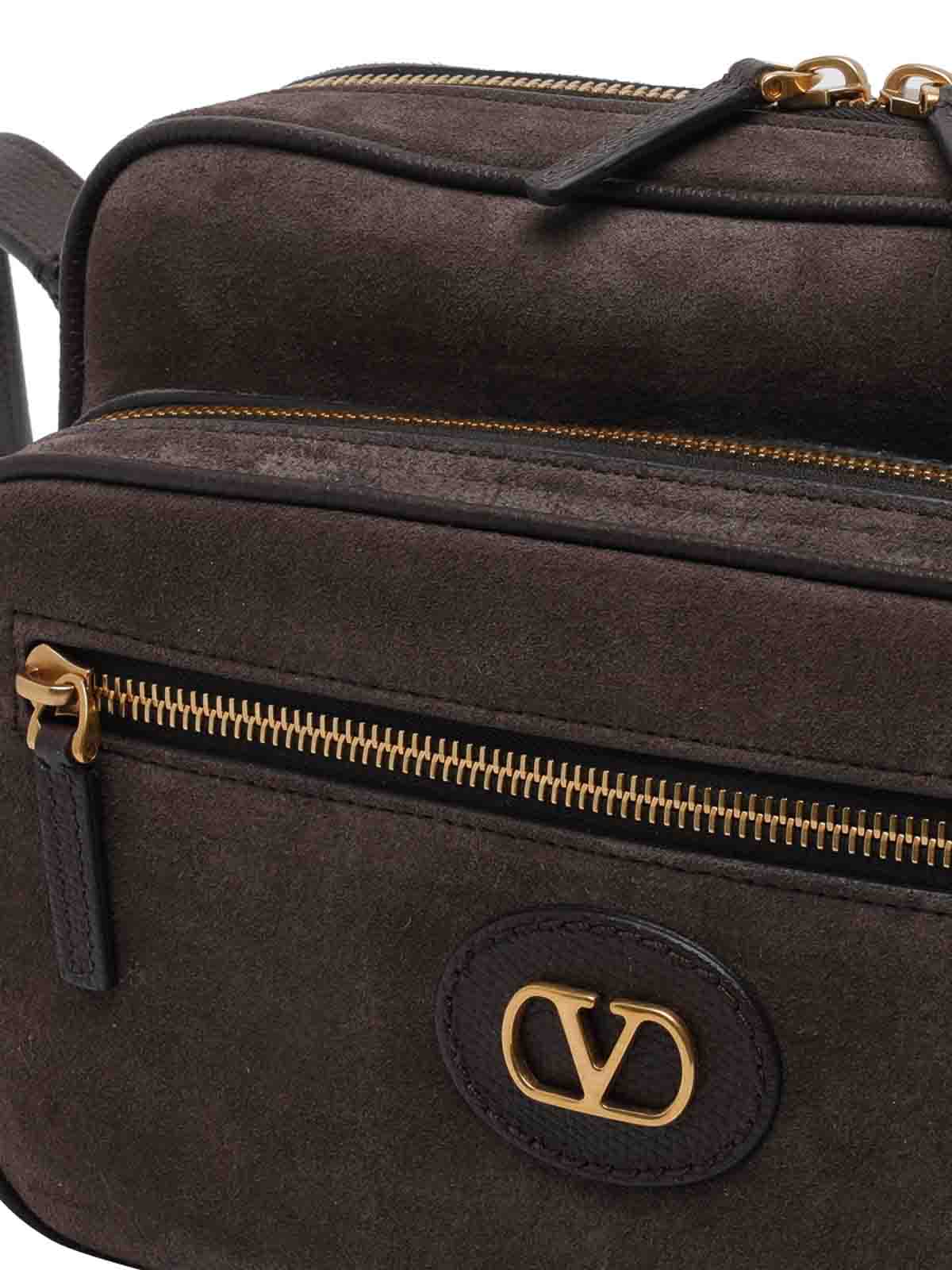 Valentino Garavani camera bag antibes marrone, chiusura con zip, 2 tasche esterne con zip, tracolla adattabile, logo frontale, modello scamosciato