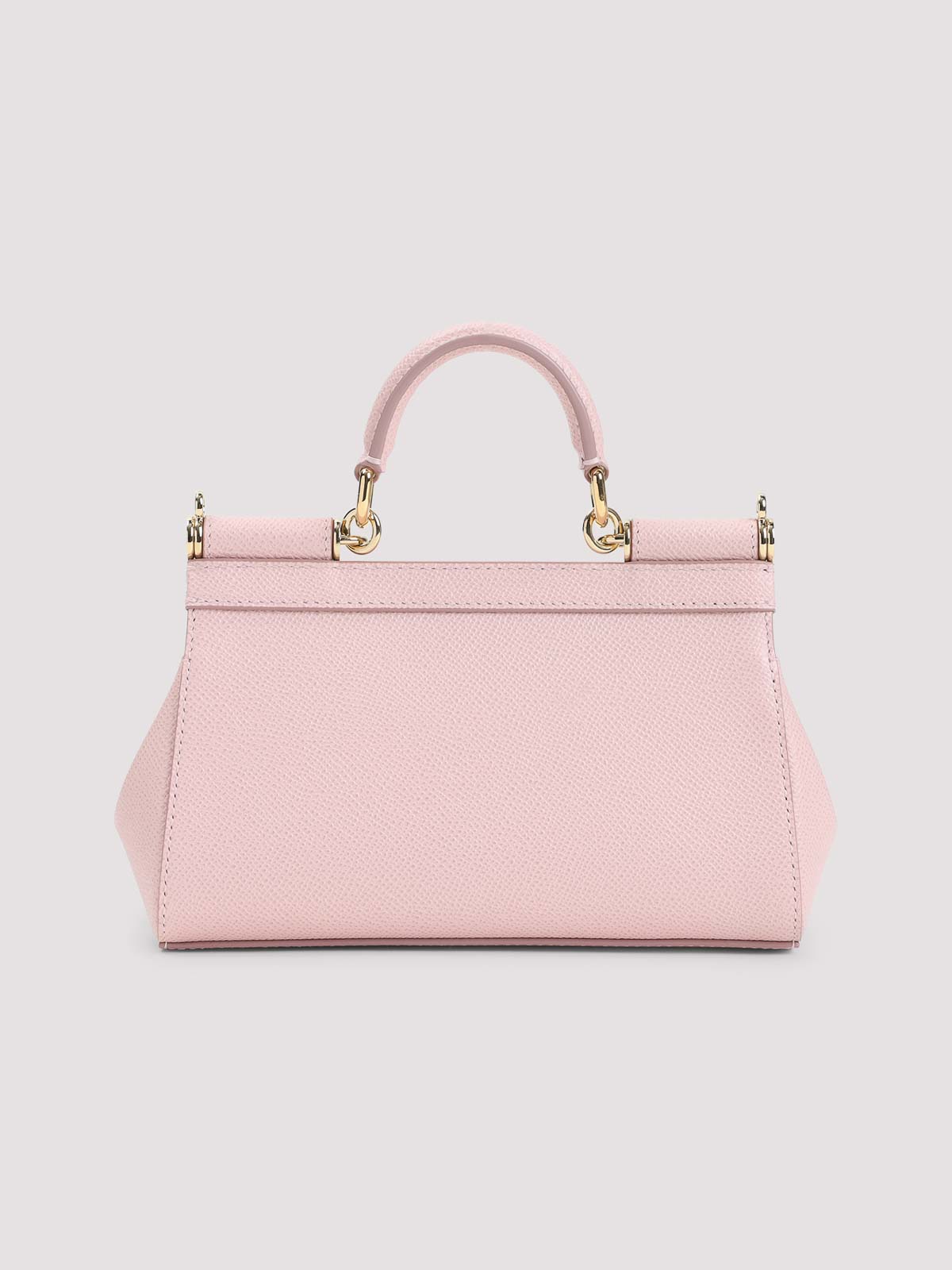 Dolce & Gabbana borsa siciliana piccola con manico rosa. pelle rosa, patta frontale con chiusura magnetica nascosta, manico sulla parte superiore. tracolla staccabile in tono. targhetta logo con due finiture di placcatura in metallo, complet.mes nte foderata.