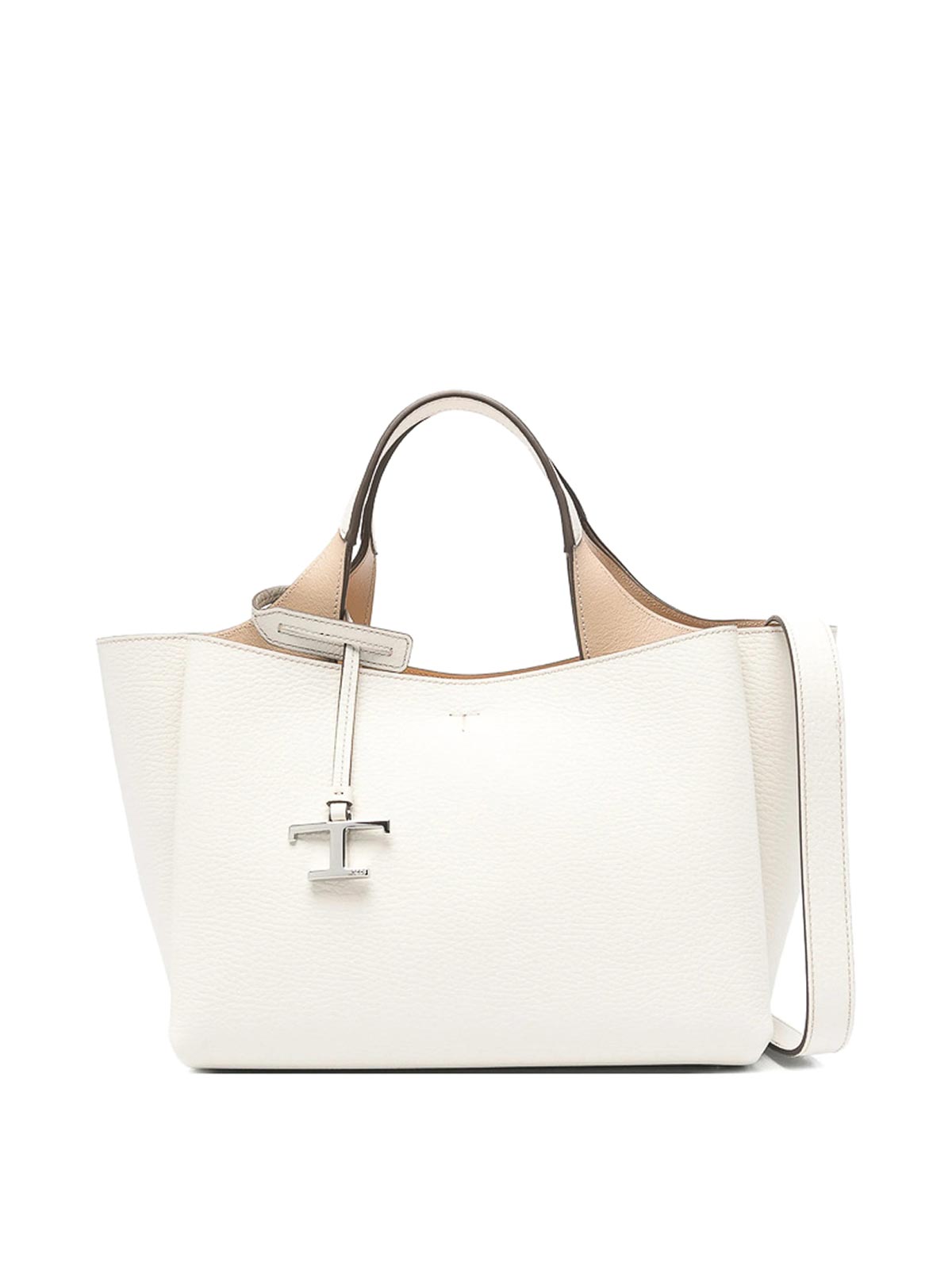 Manici superiori bianchi, tracolla staccabile, hardware color argento, tasca interna con chiusura a zip, ciondolo con logo, questo pezzo viene fornito completo di un sacchetto protettivo per la polvere.
