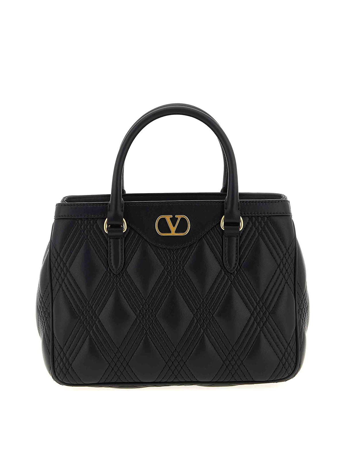 Borsa a mano Quiltie 67' in nappa trapuntata con intreccio a rombi delineato da cuciture tono su tono, firma vlogo effetto metallizzato anticato sul davanti, doppio manico fisso, tracolla regolabile e removibile.