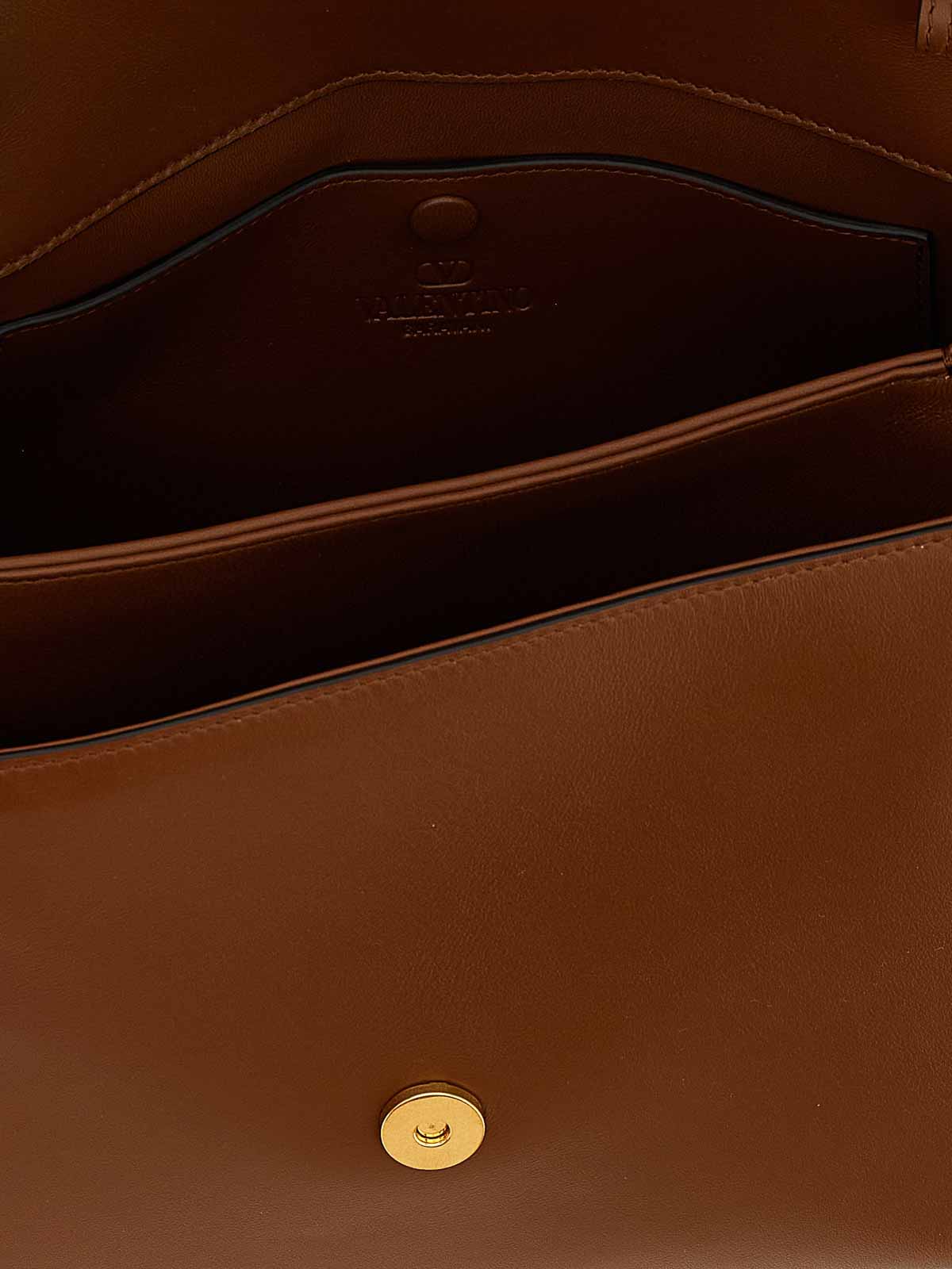 Borsa a mano '9to5' in pelle di vitello liscia, chiusura con patta magnetica con firma vlogo in metallo anticato sul davanti, manico fisso, tracolla regolabile e removibile.