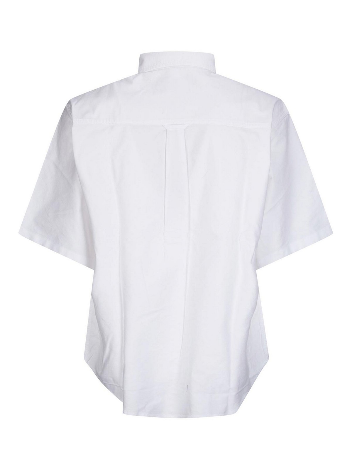 Camicia in cotone a maniche corte con colletto con bottoncini, chiusura frontale con bottoni, tasca sul petto con logo ricamato.