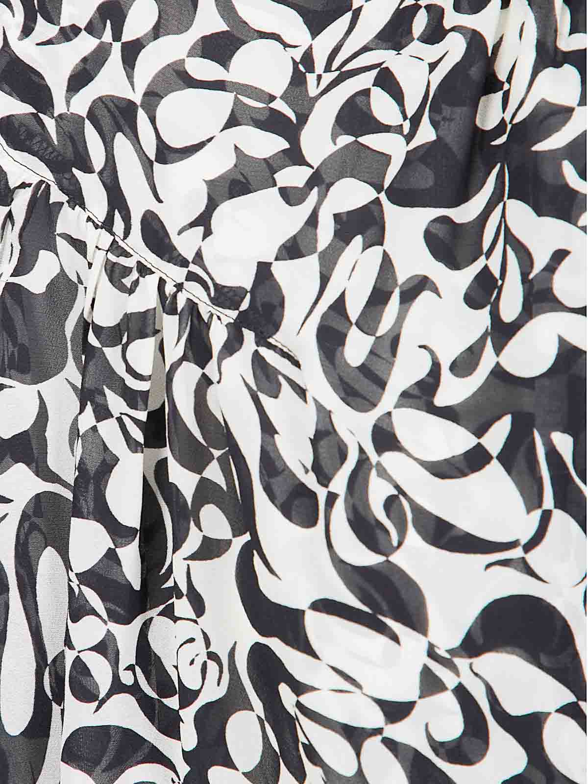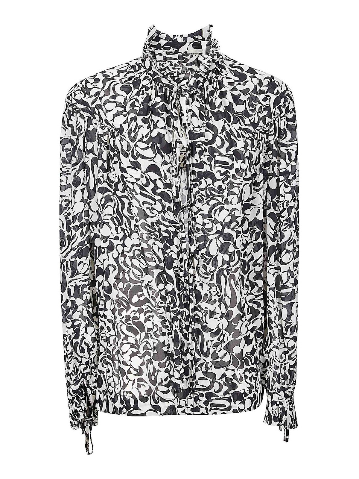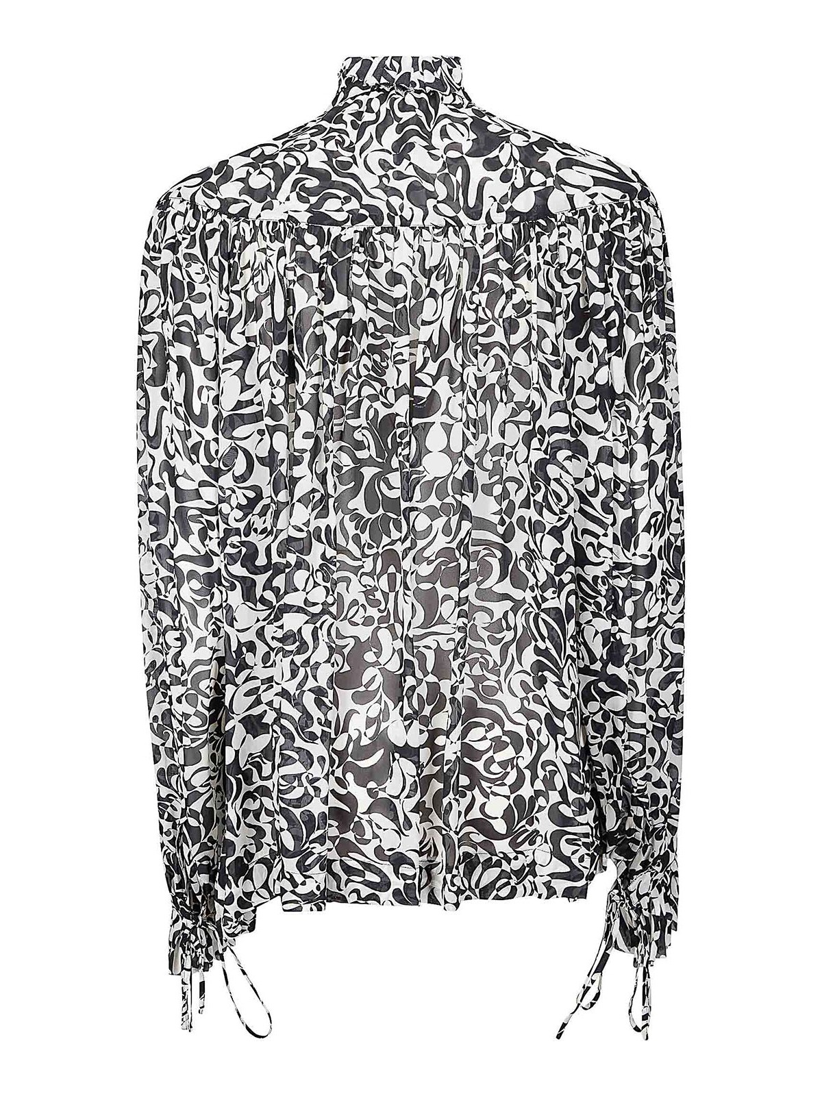 Camicia in tessuto leggero, stampa a contrasto, laccetti e balze a decoro.