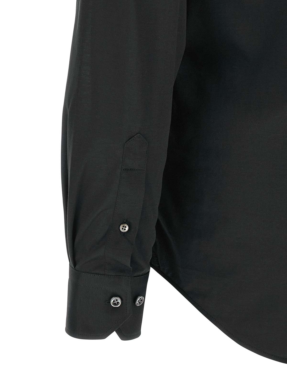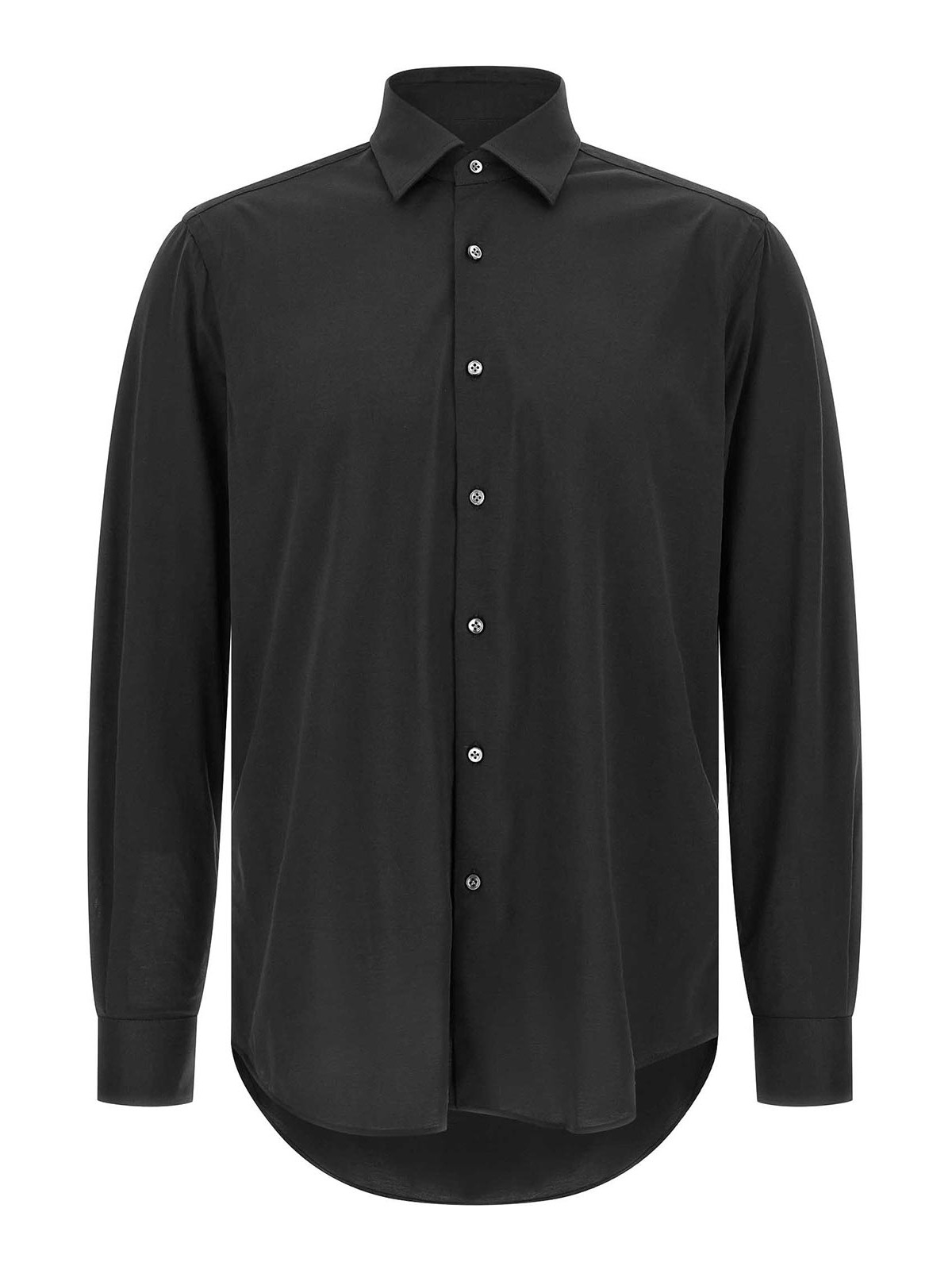 Camicia capsule 'effortless' in jersey di cotone easy, colletto in milano, chiusura frontale con bottoni, maniche lunghe con risvolto, fondo arrotondato.