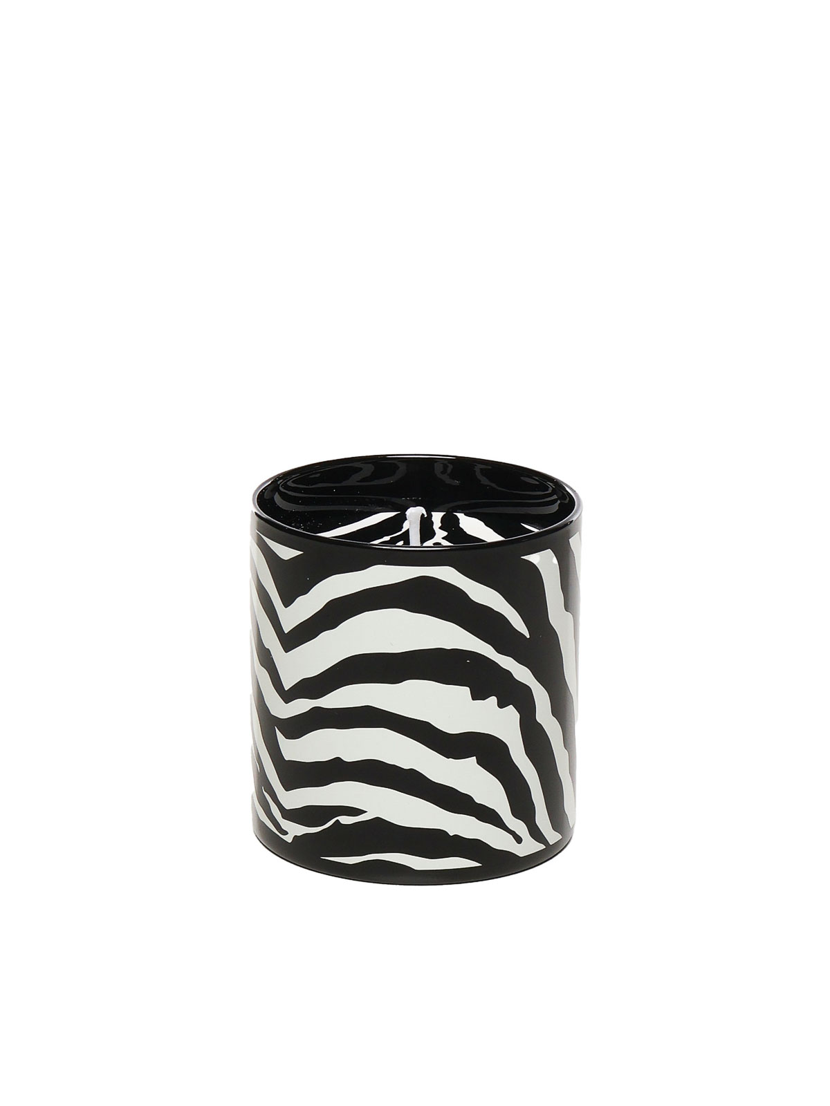 Litchi e gelso donano a questa candela una dolce fragranza inebriante e piacevolmente fruttata le morbide note del tiarè il delicato fiore tropicale aggiungono rotondità all'aroma della candela che viene proposta in un vaso dal motivo animalier esotico colore zebrato