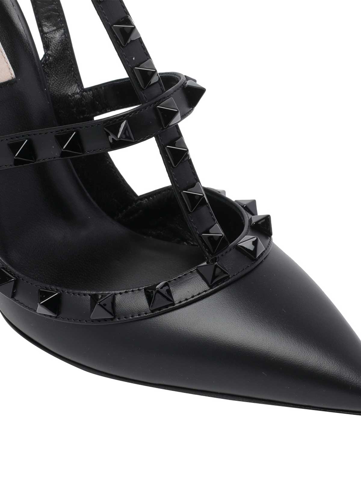 Decollete' Rockstud nera Valentino Garavani, a punta, borchie allovet tono su tono, a punta, tomaia in pelle