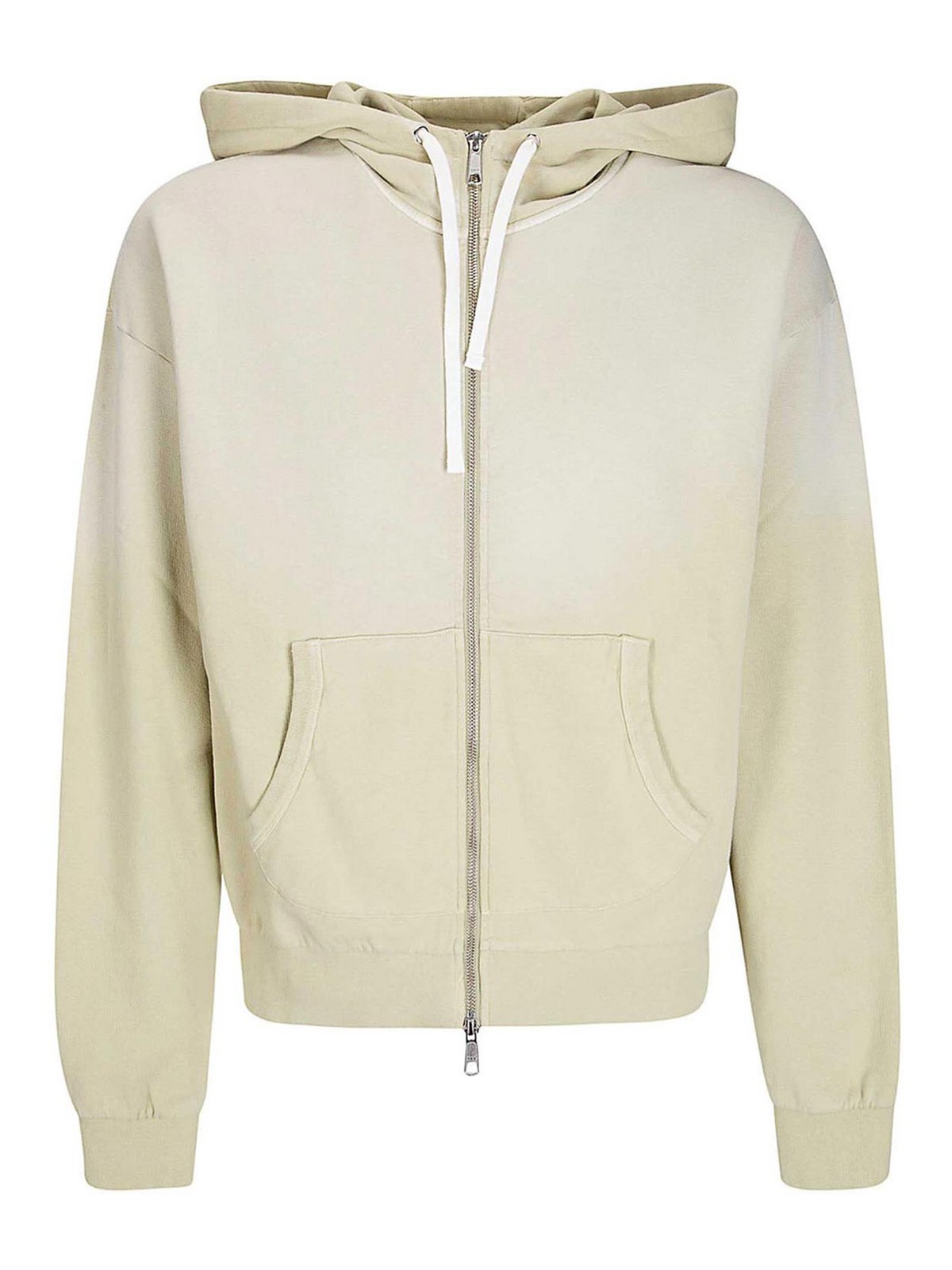 Felpa con zip e cappuccio ampio, tasca frontale, fit corto, maniche con patta al gomito.