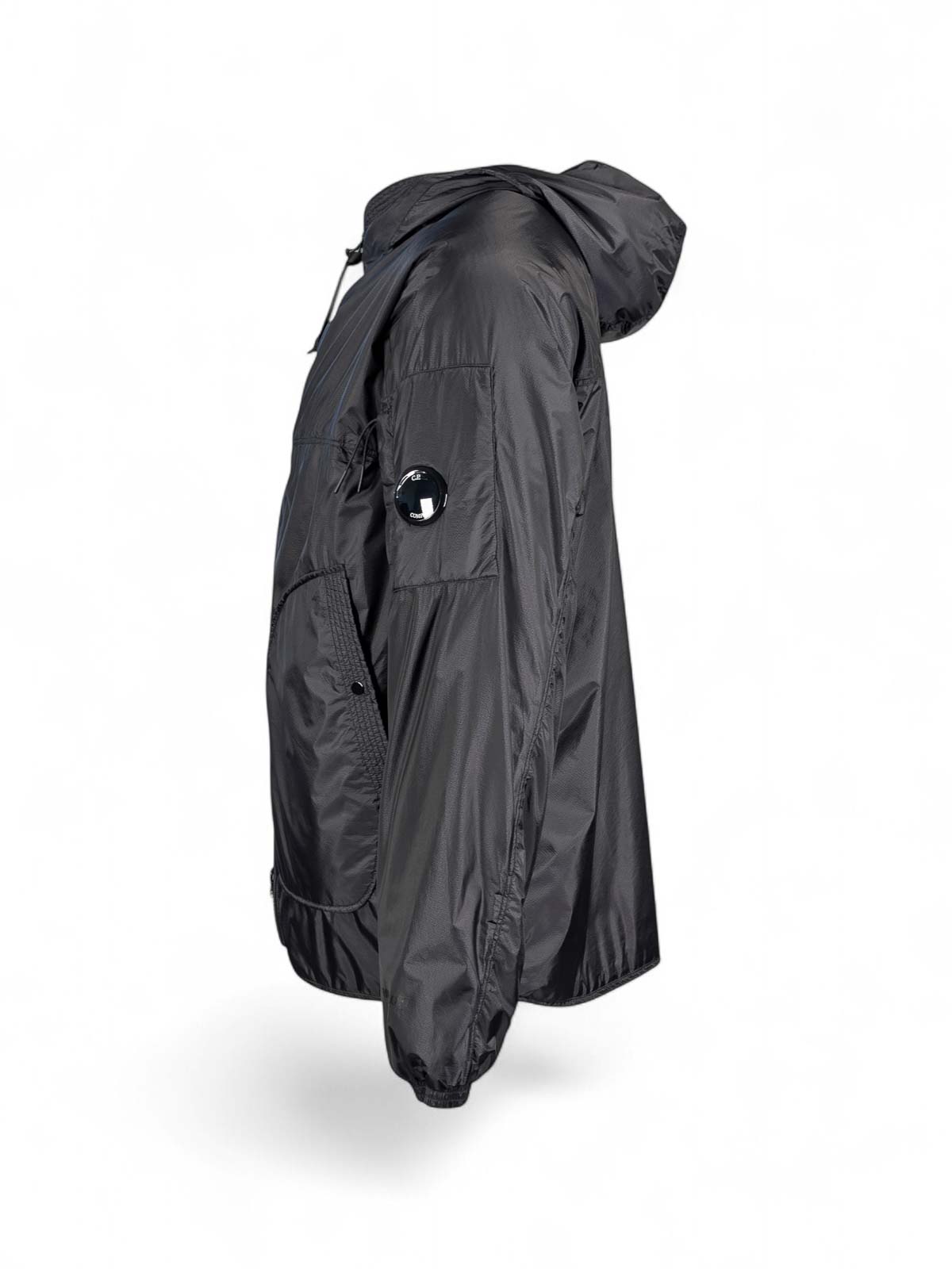 Cp company, outerwear medium jacket nero,, giacca con cappuccio packable realizzata in nada shield, nylon rip-stop laminato 15 denari che assicura traspirabilit e resistenza allacqua fino a 5000 mm di colonna dacqua. un capo tecnico progettato per garantire protezione e leggerezza, facilmente ripiegabile per il trasporto. il modello presenta cappuccio con visiera regolabile e coulisse posteriore, chiusura full zip a doppio cursore e tasche laterali con bottoni automatici. il taschino applicato sulla manica, completato dalliconica lente c.p. company. polsini elasticizzati e orlo regolabile con coulisse assicurano adattabilit e comfort. limbottitura primaloft evolve combina efficienza termica e versatilit, offrendo isolamento leggero e funzionale. vestibilita' regular., tessuto nada shield in nylon rip-stop laminato 15 denari, resistenza allacqua fino a 5000 mm, modello packable, cappuccio con visiera regolabile e coulisse posteriore, chiusura full zip a doppio cursore, tasche laterali con bottoni automatici, taschino su manica con lente c.p. company, polsini elasticizzati, orlo regolabile con coulisse, imbottitura primaloft evolve, vestibilita' regular, .