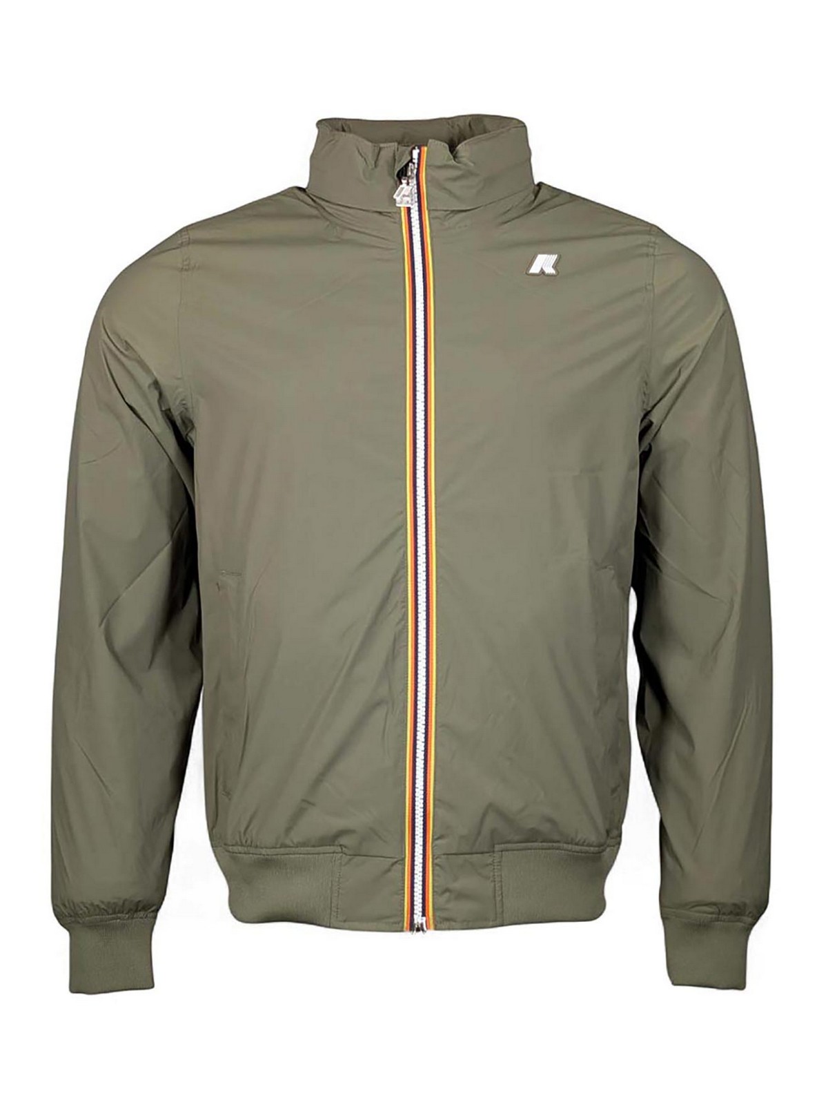 K-way, amaury stretch nylon jersey, nylon stretch, green lichen,, giacca corta da uomo che combina unestetica casual urbana con le caratteristiche tecniche k-way. il modello amaury, realizzato in nylon stretch resistente agli agenti atmosferici, progettato per offrire protezione e comfort durante la mezza stagione. linterno, rifinito con morbida fodera in jersey di cotone grigio melange applicata su fronte e retro, per garantire una piacevole sensazione a contatto con la pelle. le cuciture termonastrate migliorano lisolamento, mentre liconico tape multicolor k-way al punto vita aggiunge un dettaglio distintivo. il design include cappuccio ripiegabile a scomparsa nel collo, chiusura frontale con zip, polsi e fondo corpo in costina. il taglio di ventilazione sul retro favorisce la traspirazione, mentre le due tasche con zip completano la funzionalit del capo. logo in silicone bianco applicato., tessuto nylon stretch impermeabile, antivento e traspirante, fodera in jersey di cotone su fronte e retro, cuciture termonastrate, cappuccio ripiegabile a scomparsa nel collo, chiusura con zip, polsi e fondo in costina, due tasche con zip, ventilazione posteriore, logo in silicone bianco.