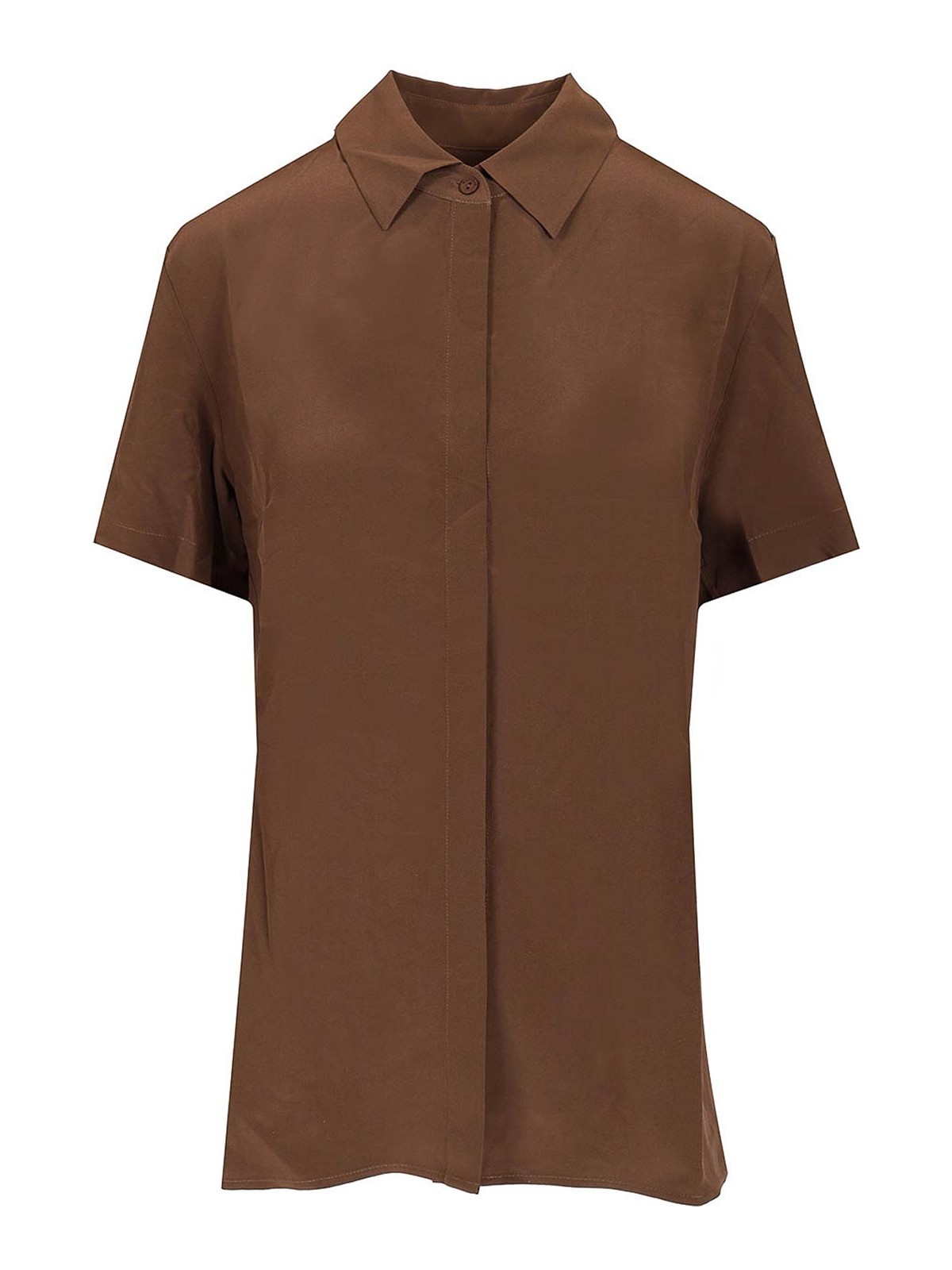 Camicia a maniche corte in crepe de chine di seta di Matteau, con chiusura con bottoni a vista e spacchetti laterali
