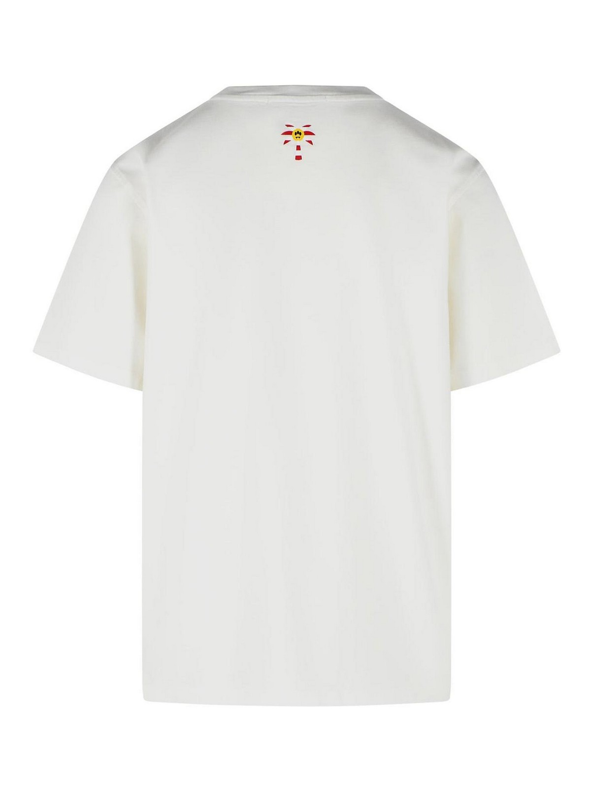 Girocollo a costine, stampa 'club de barrow' frontale a contrasto, maniche corte, fondo dritto, vestibilità comoda