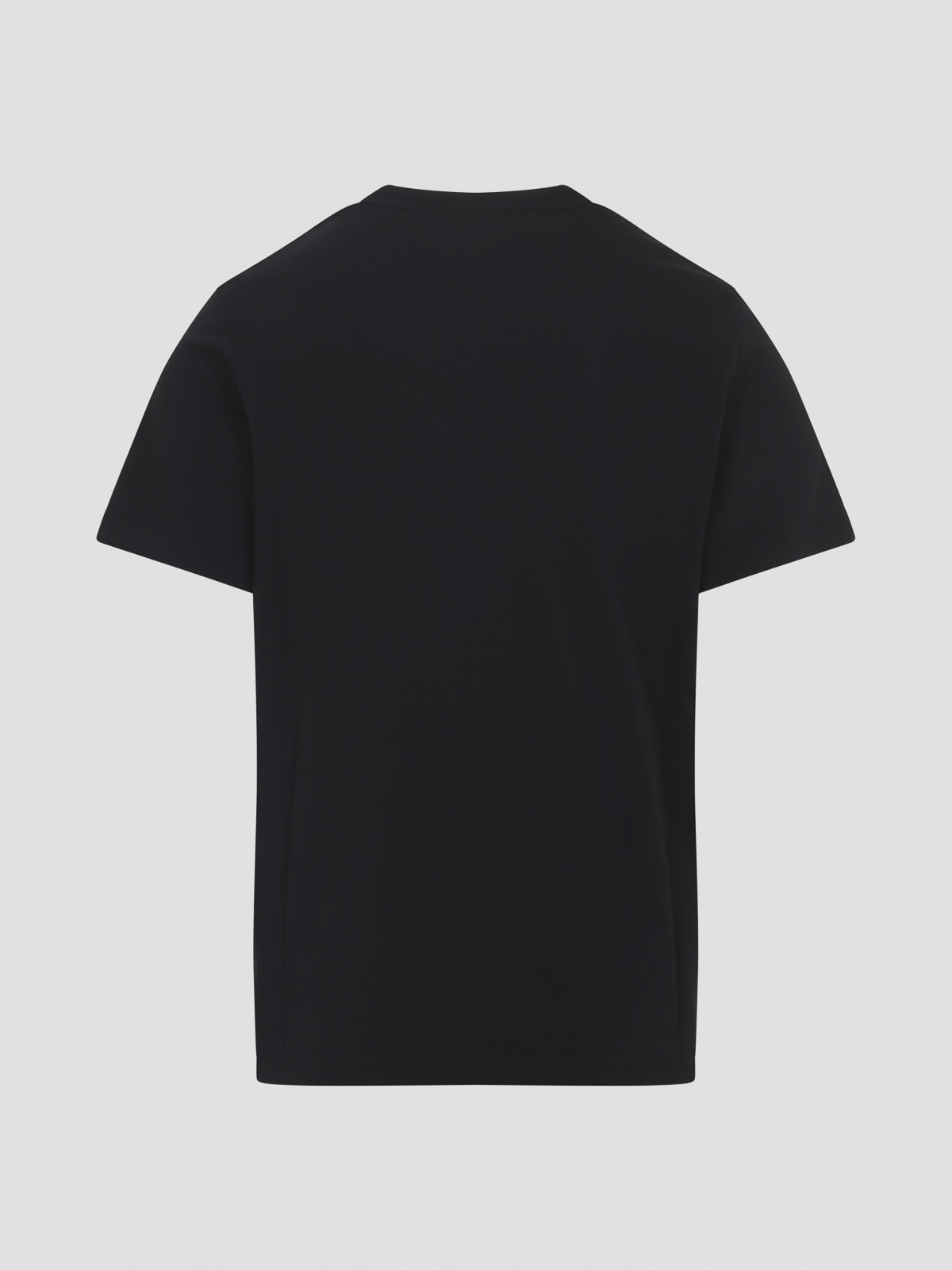 T-shirt Moncler in cotone nero. T-shirt classica realizzata in jersey di cotone nero, caratterizzata da scollo rotondo a costine, logo stampato sul petto, toppa con logo in gomma sulla manica, maniche corte e orlo dritto.