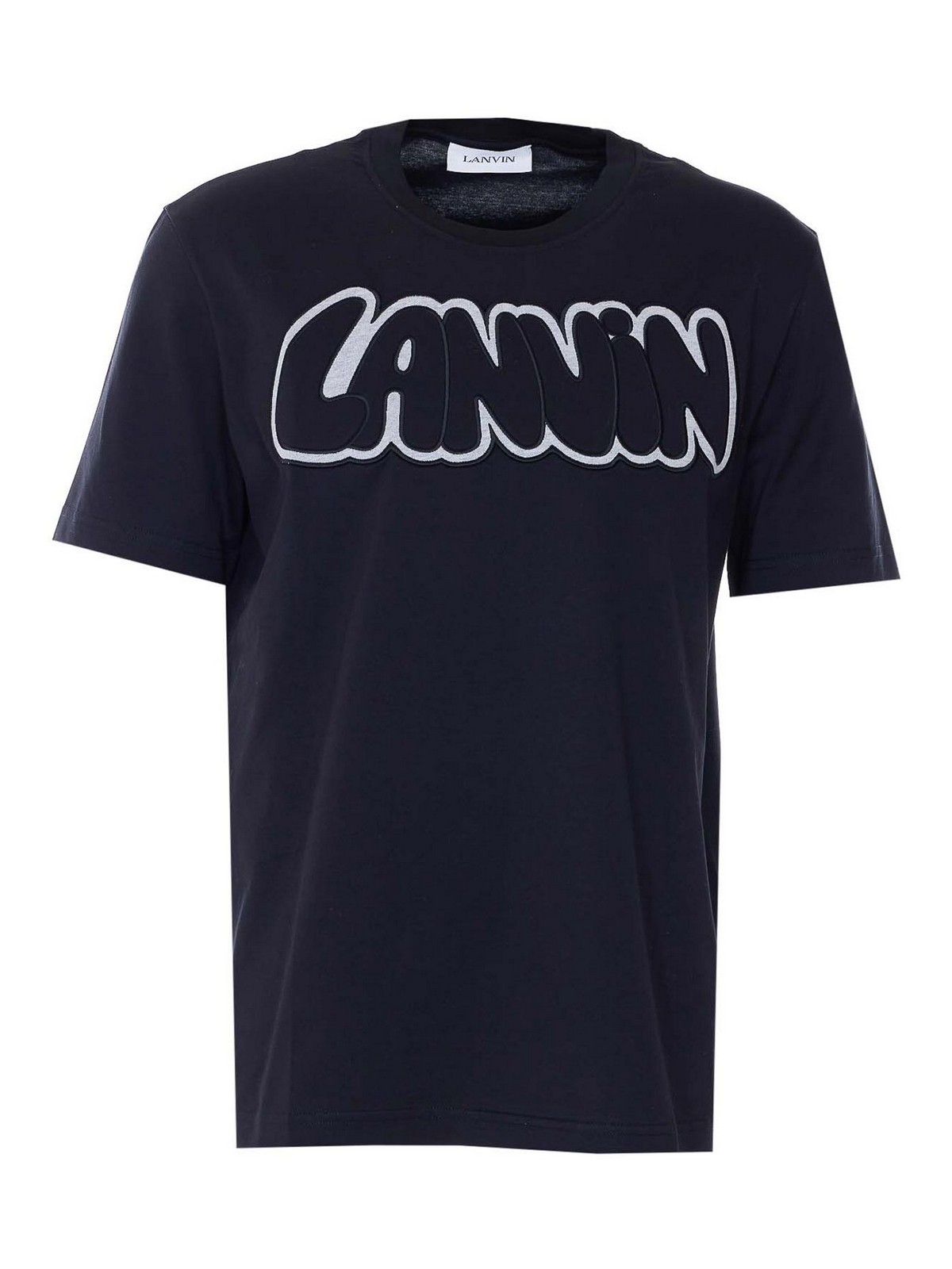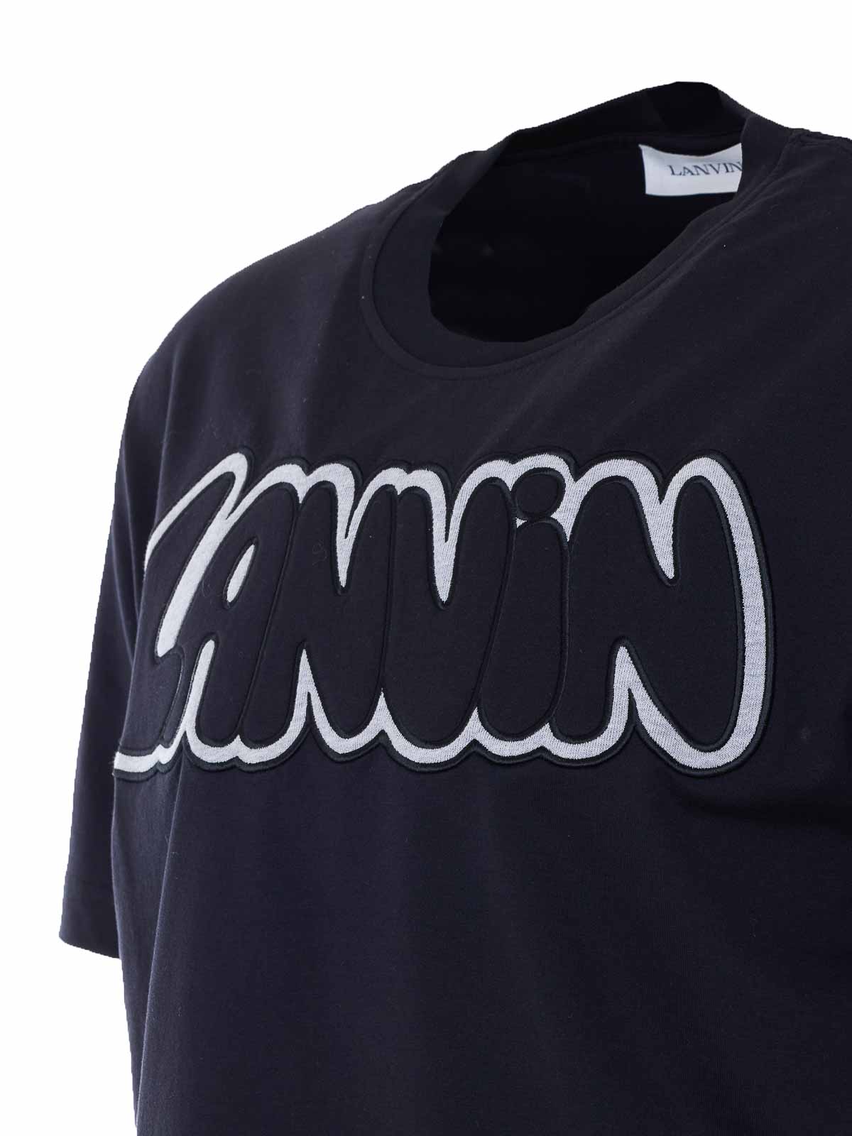 T-shirt nera Lanvin, girocollo, logo ricamato sul davanti