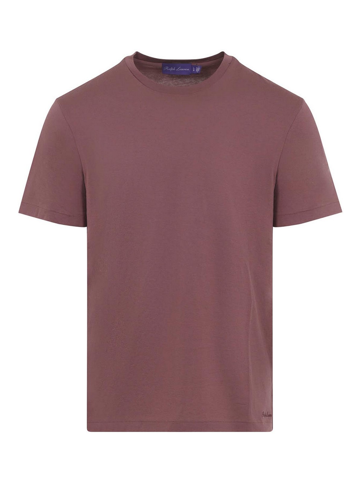 T-shirt Ralph Lauren in cotone rosso legno con etichetta viola. T-shirt in puro cotone red wood, girocollo, maniche corte, fondo dritto, cuciture tono su tono.