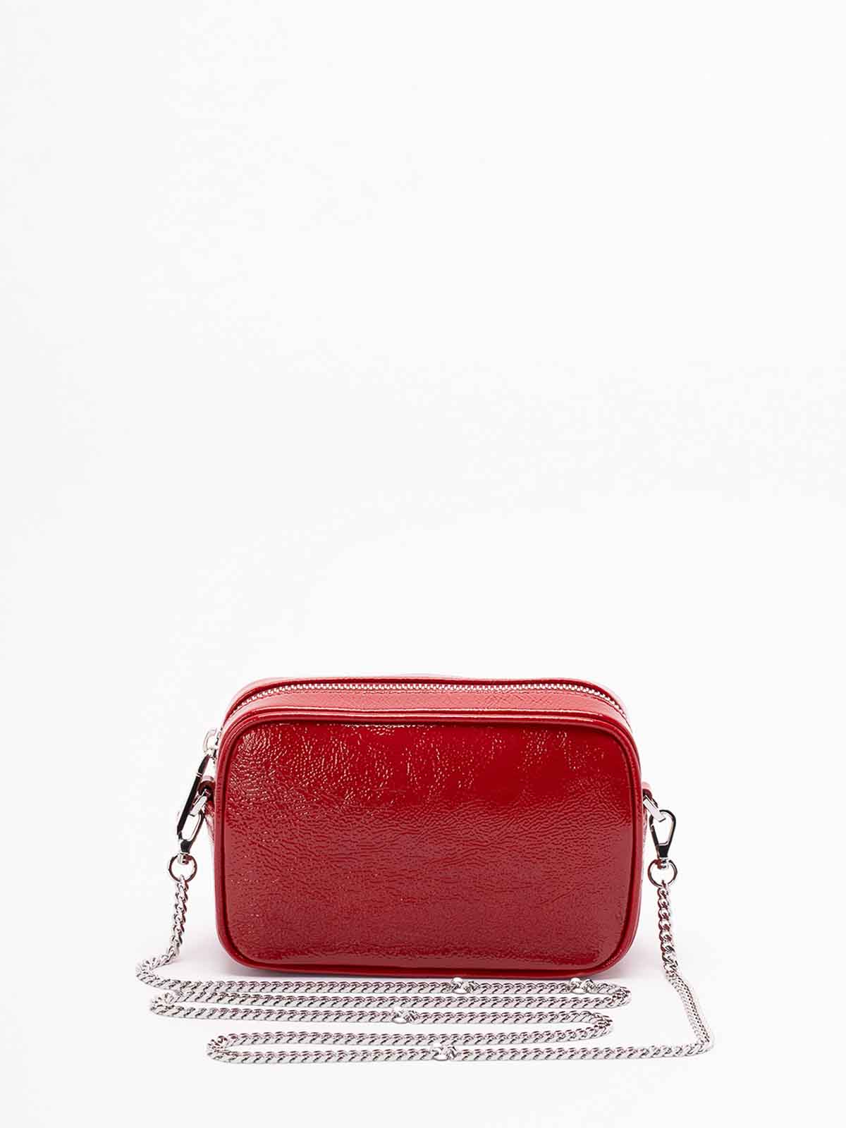 Borsa mini strutturata con manico superiore, tracolla removibile e stella decorativa frontale.