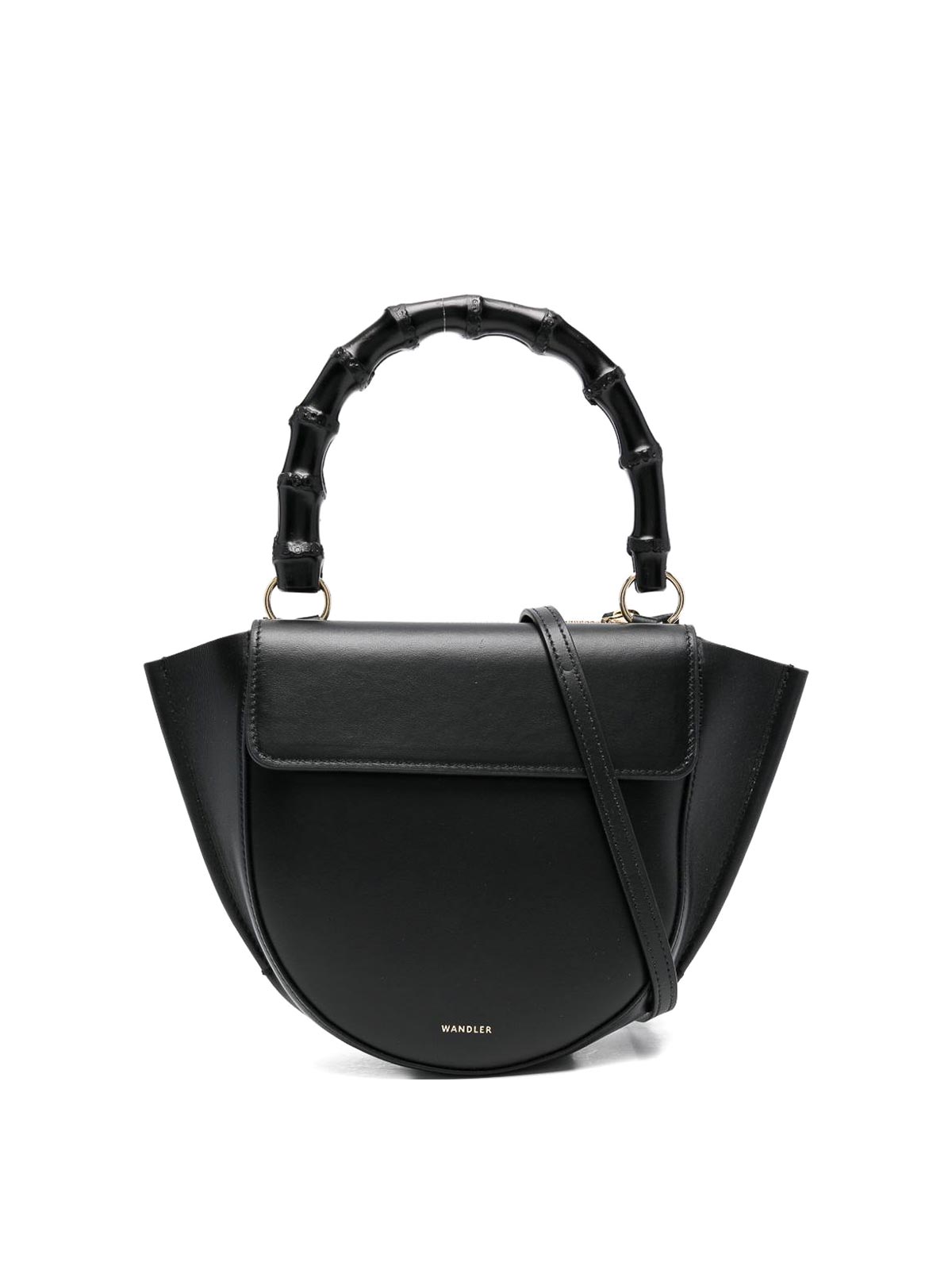 Borsa tote mini Hortensia nera con manico in bambù di Wandler