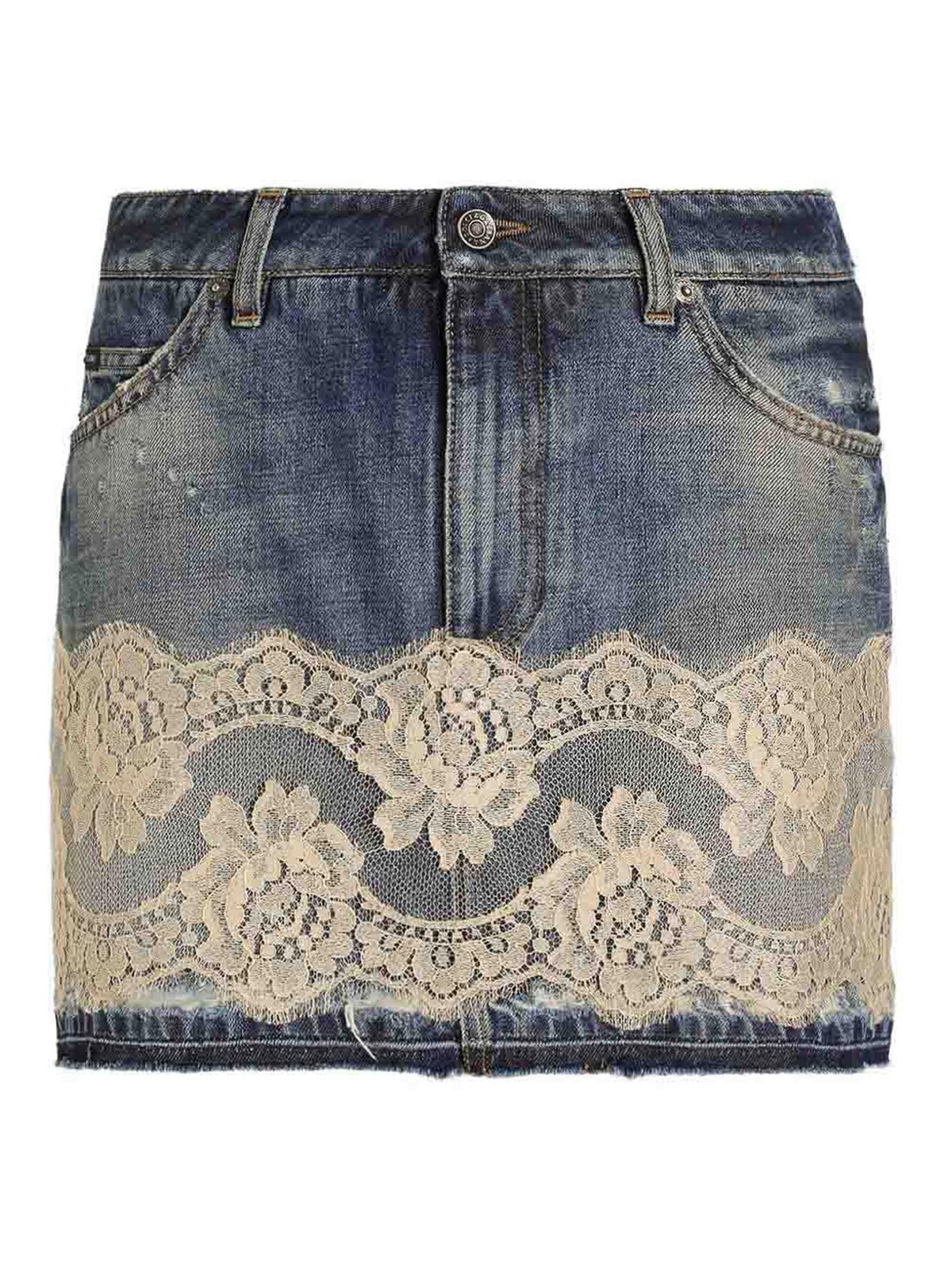 Minigonna in denim con pizzo bianco di Dolce & Gabbana