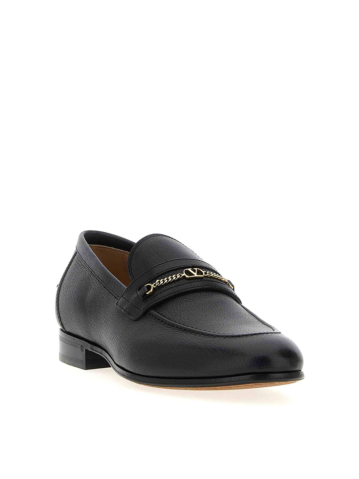 Mocassini in pelle di capra con dettaglio catena con 'vlogo Signature' in metallo anticato sul davanti e suola in cuoio.