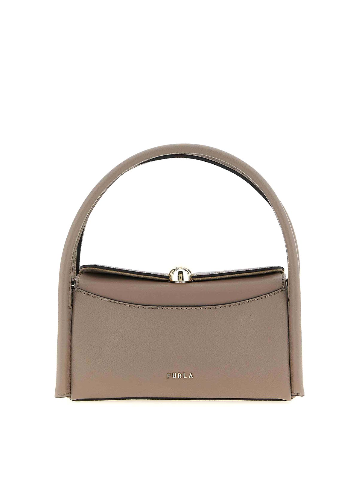 Borsa a mano mini Boston Nicole' in pelle stampata effetto grana con doppio manico fisso, chiusura con patta magnetica, logo lettering in metallo frontale e tracolla regolabile e removibile.