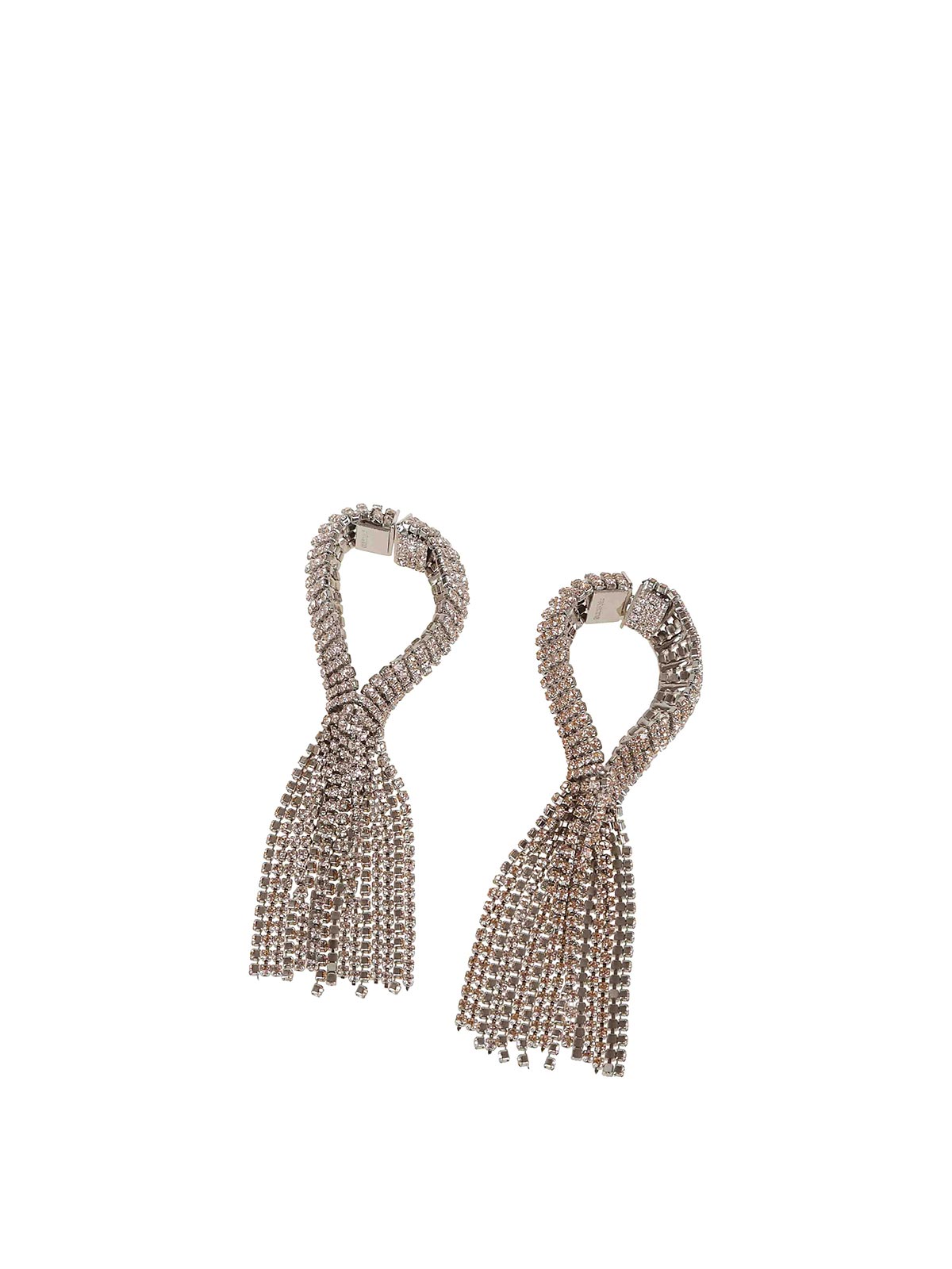 `chiusura a moschettone argentato, dettagli frangiati, design a goccia. questi orecchini sono venduti in coppia.`