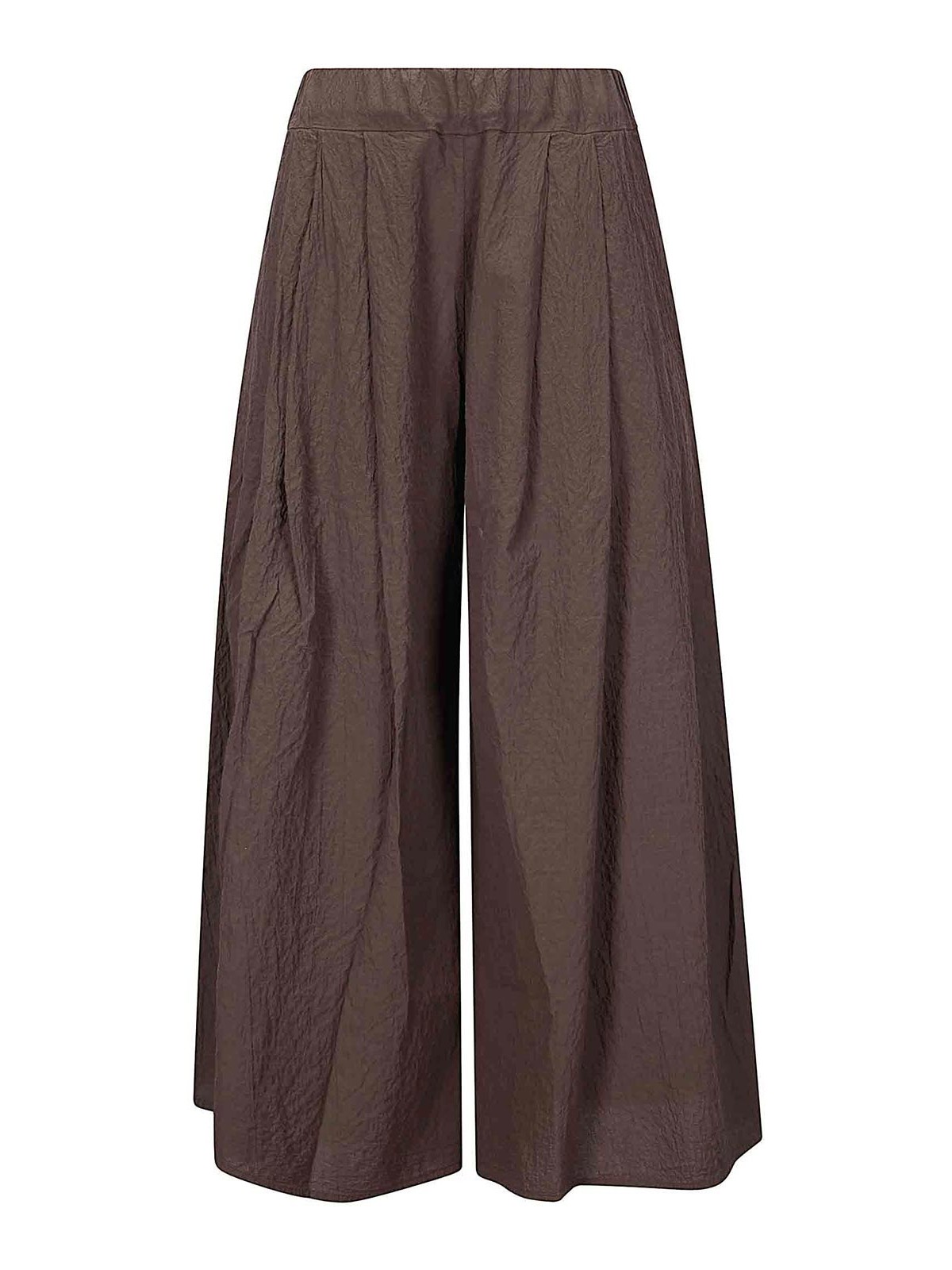 Pantaloni in cotone morbidi con vita alta a fascia, gamba larga, tessuto leggero.tasche laterali.