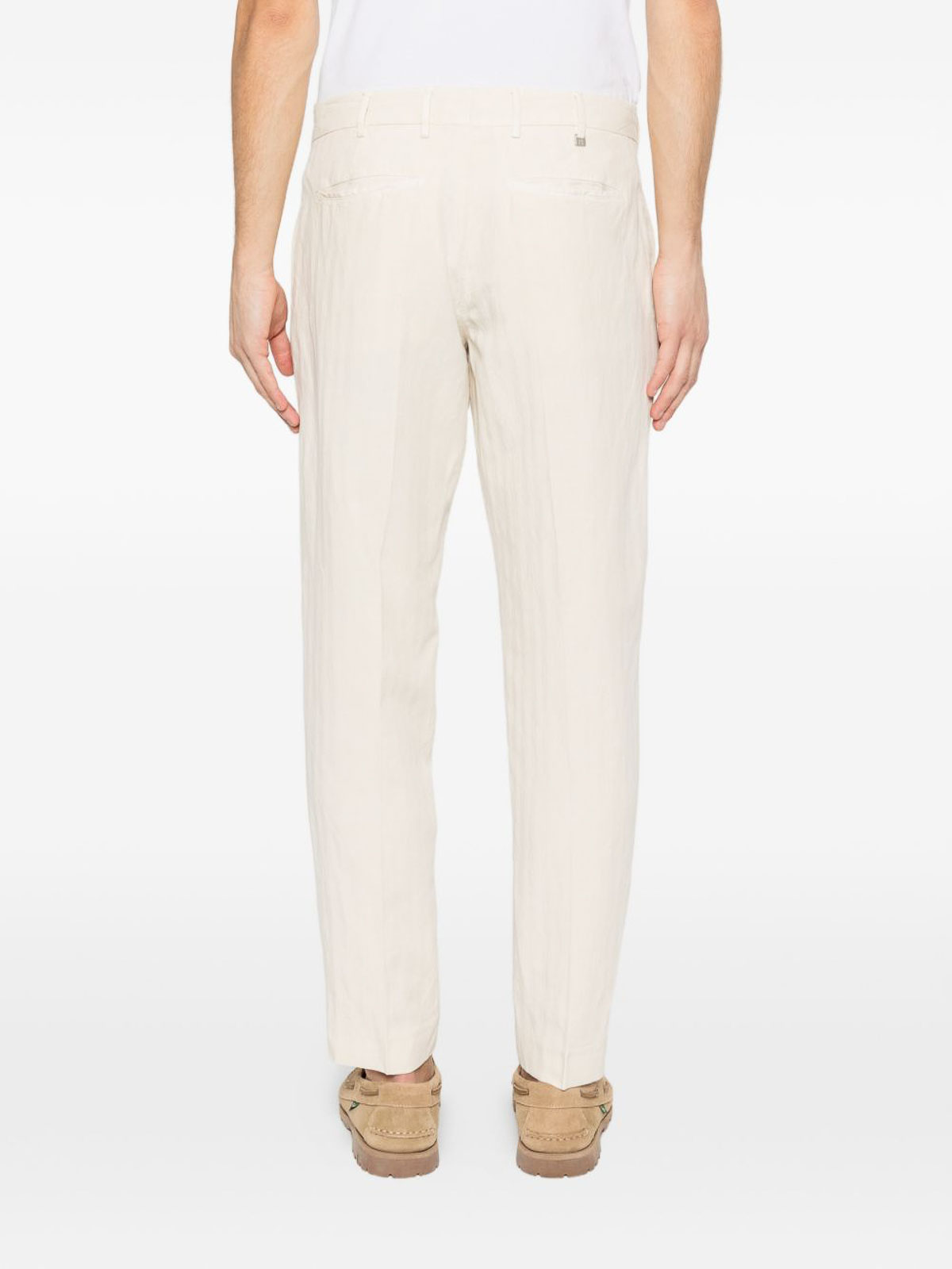 Caratteristiche beige pieghe passanti per cintura tasche laterali composizione lyocell 59%, lino 23%, cotone 18% .