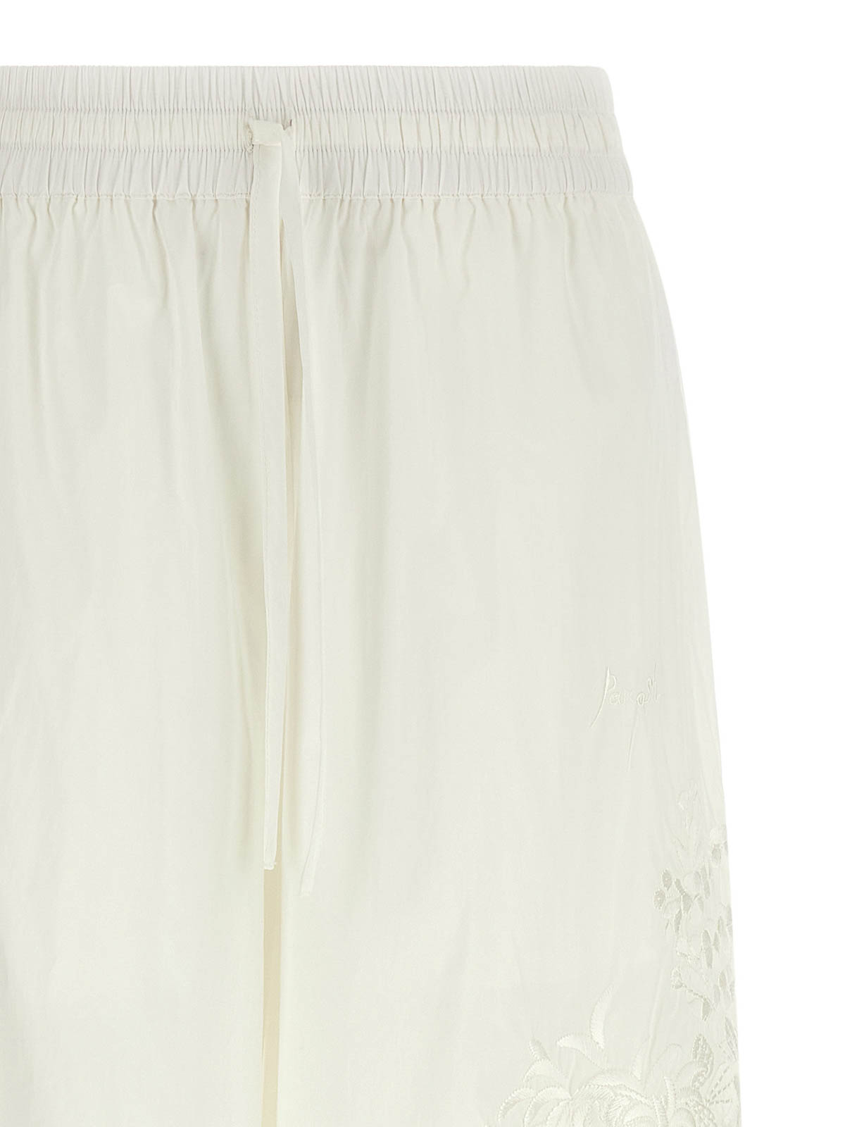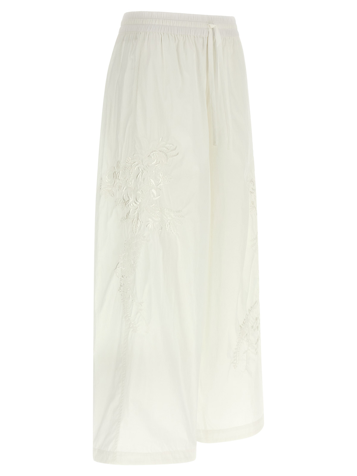 Pantaloni 'ninja26' in tessuto tecnico, gamba ampia e dritta con ricami in cotone tono su tono sui fianchi, elastico con coulisse in vita, tasche.