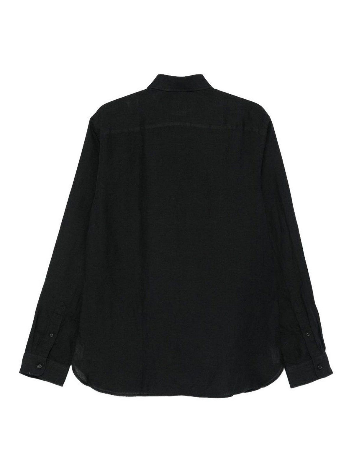 Maniche lunghe nere, colletto a punto, chiusura con bottoni, cuciture tono su tono, vestibilità regolare