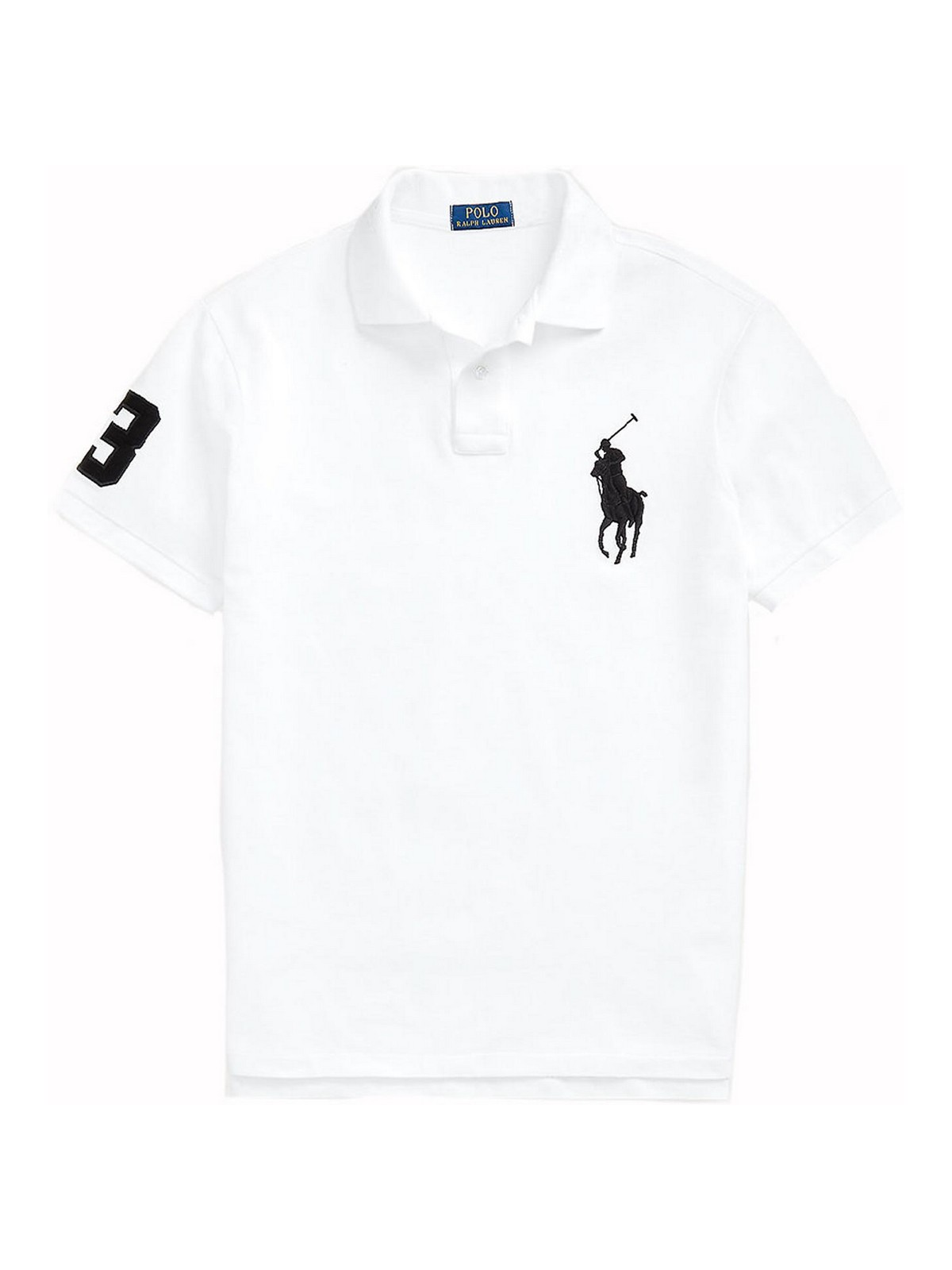Polo Ralph Lauren in piqué personalizzata slim fit che abbraccia i bicipiti e si adatta perfett.mes nte alla vita. Colletto polo a coste, chiusura a due bottoni, maniche corte con polsini a coste, numero 3 in twill applicato sulla manica destra, orlo posteriore più lungo. esclusiva