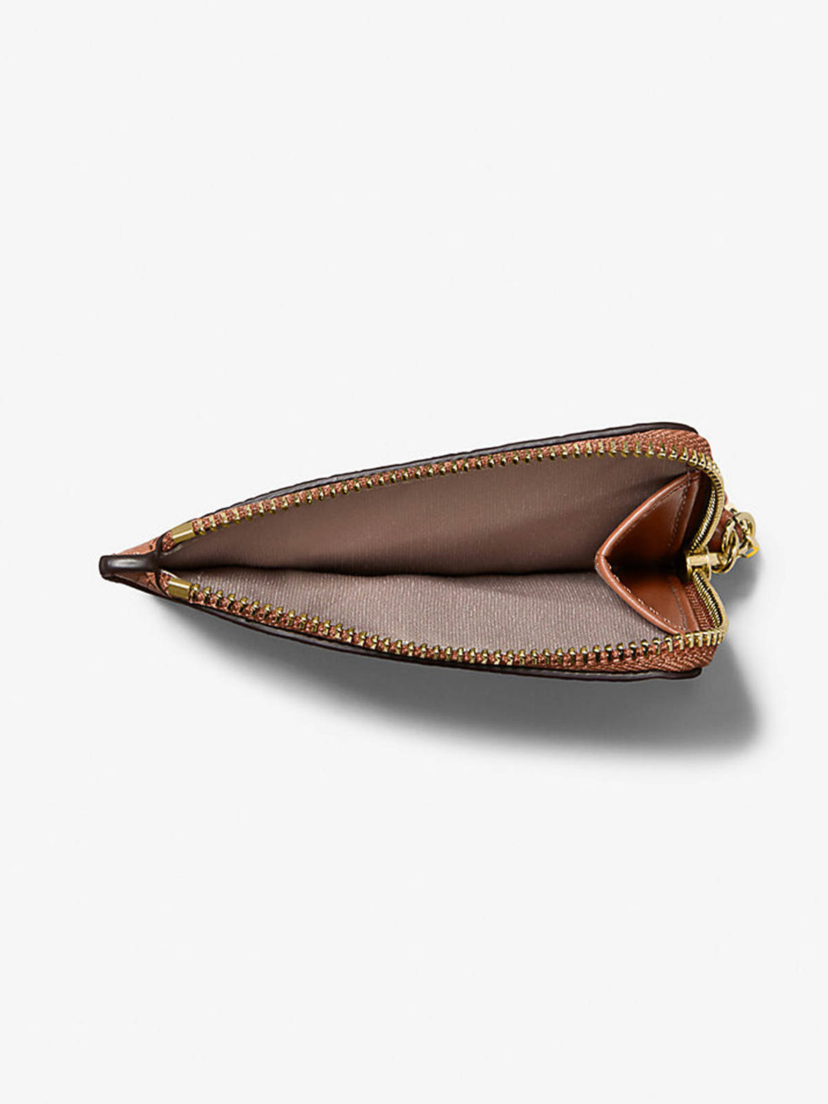 Porta carte di credito piccolo Jet Set Michael Kors con cinturino da polso, realizzato in pelle martellata con scomparti per carte di credito sul davanti e sul retro e uno scomparto con zip per contanti o chiavi. dimensioni: 11,4 cm l x 8,3 cm h x 3,8 cm p