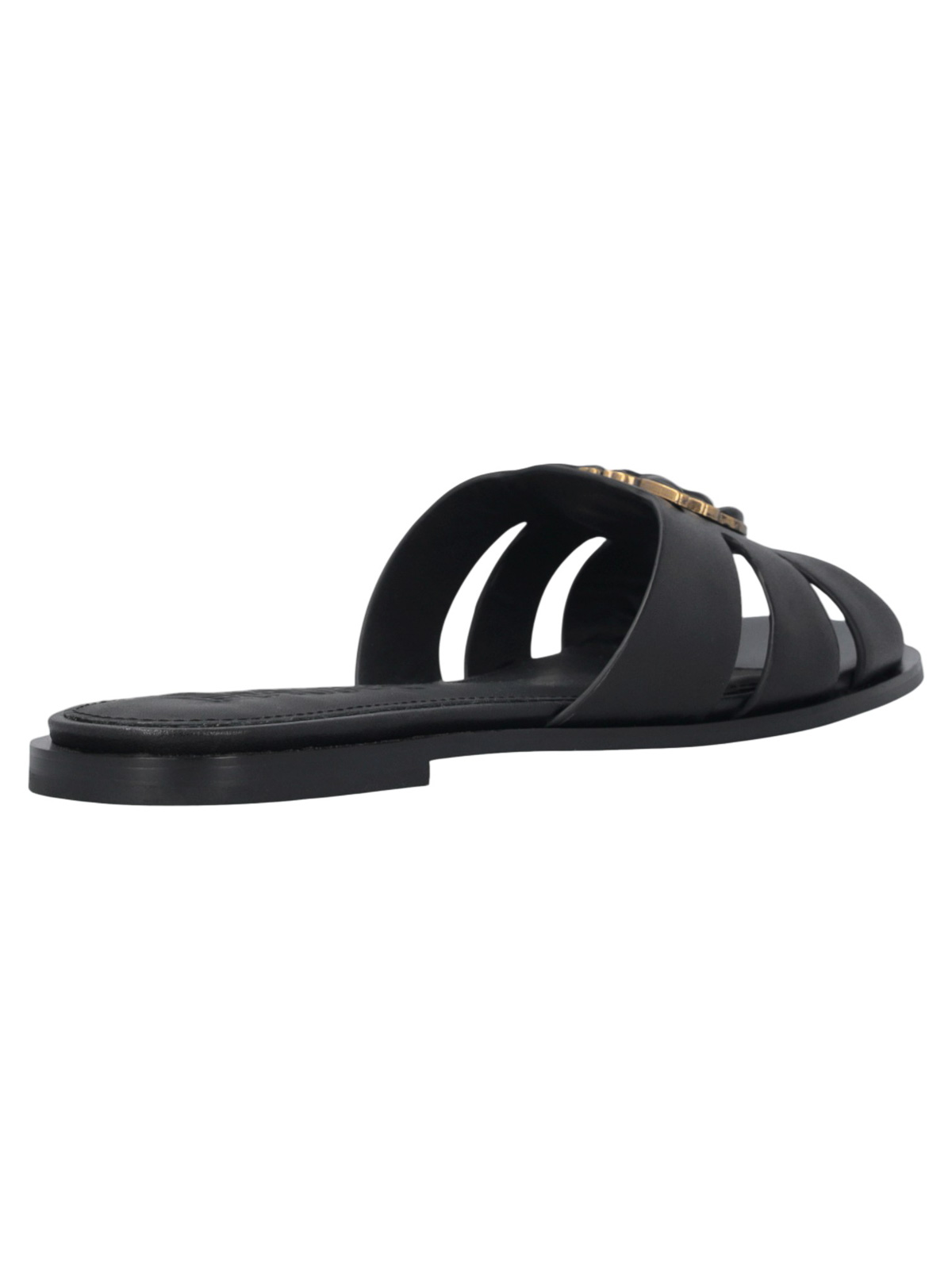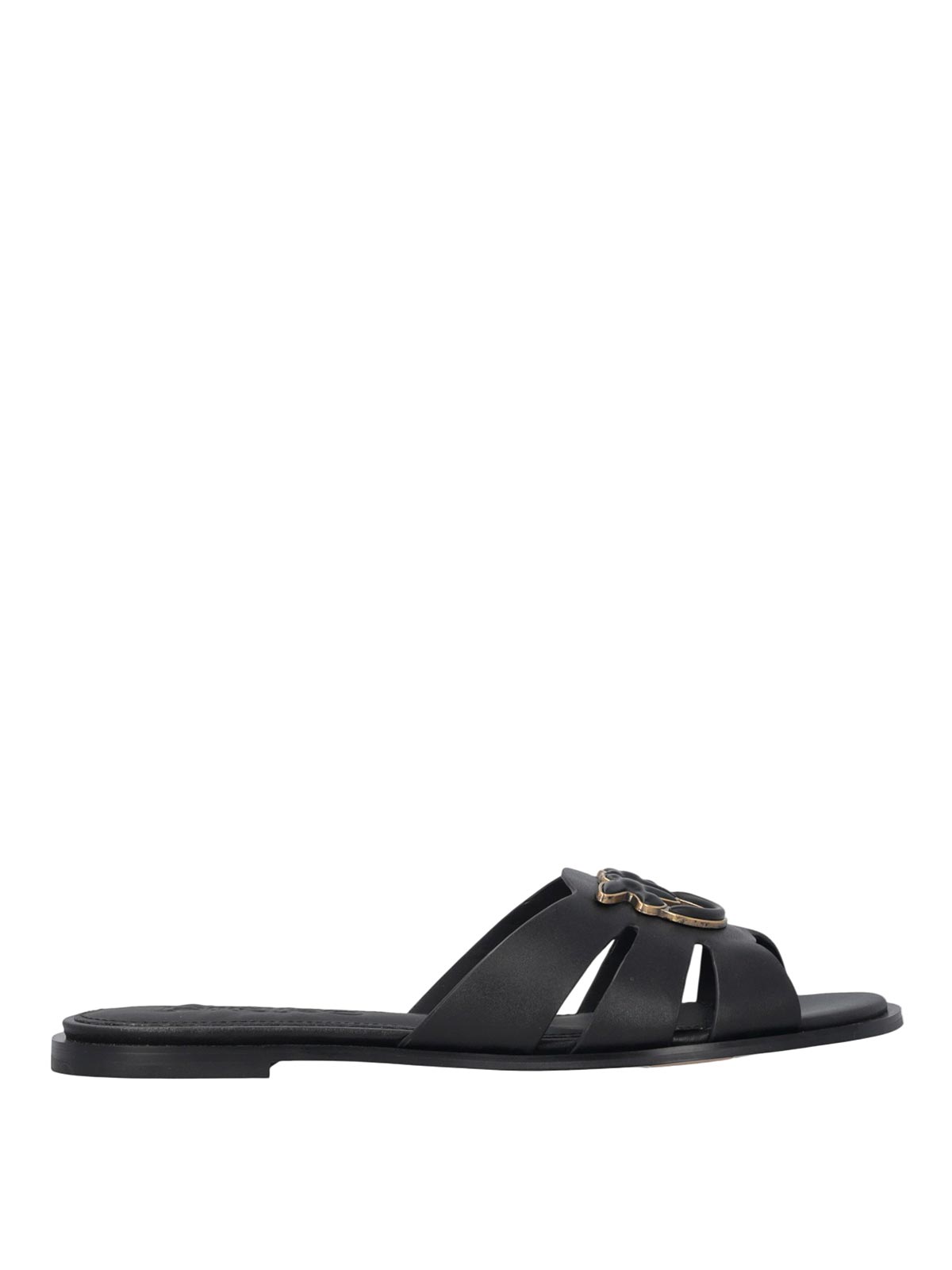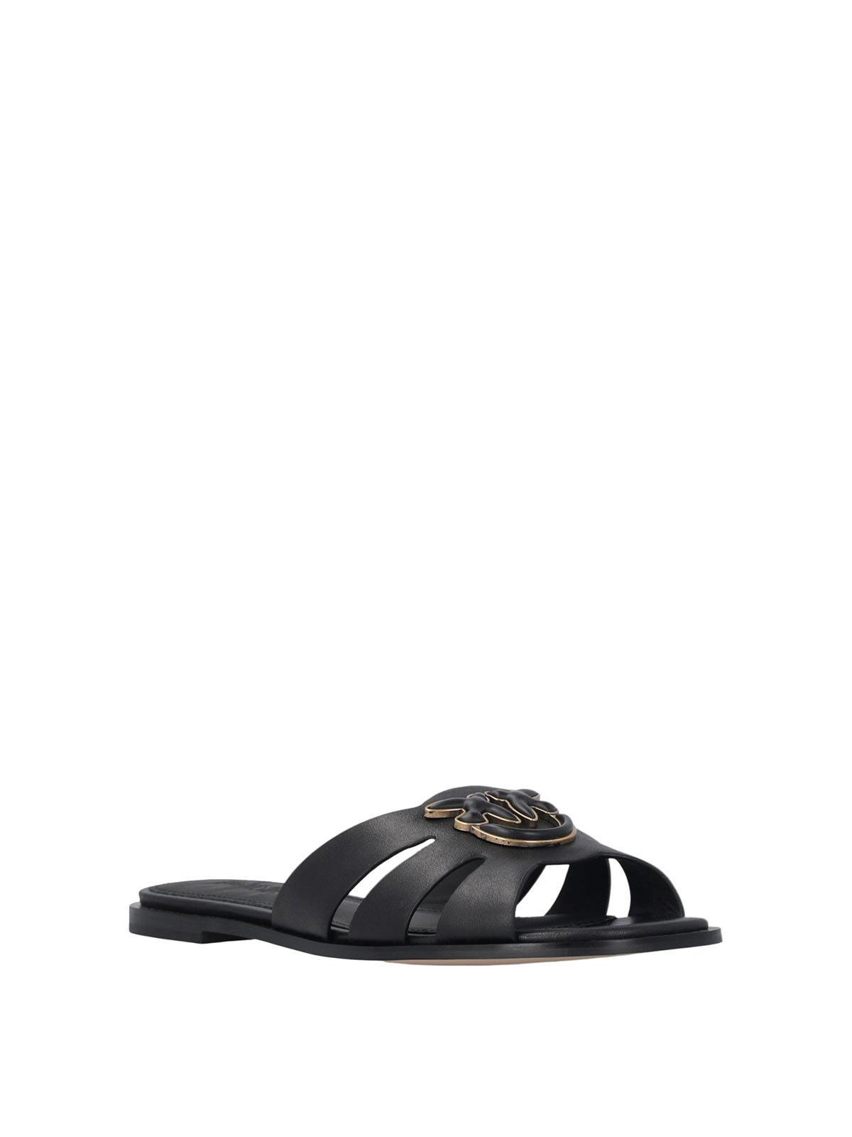 Pinko milly 04 slipper in pelle - black, slipper dal design essenziale e contemporaneo, realizzata in pelle con costruzione flat e linea pulita. la fascia Top presenta intagli laterali che alleggeriscono la struttura, mantenendo stabilit e comfort nella calzata. elemento distintivo il logo applicato in metallo con finitura a contrasto sulla parte frontale, che aggiunge un accento iconico e riconoscibile. la suola piatta completa il modello con un profilo minimale e versatile. tomaia in pelle fascia con intagli laterali logo frontale in metallo struttura flat linea essenziale, composizione tomaia: 100% pelle bovina (bos taurus)