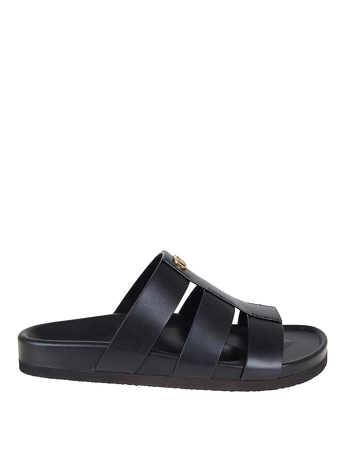 Sandalo slide in vitello di valentino garavani caratterizzato da vlogo signature finitura ottone effetto anticato