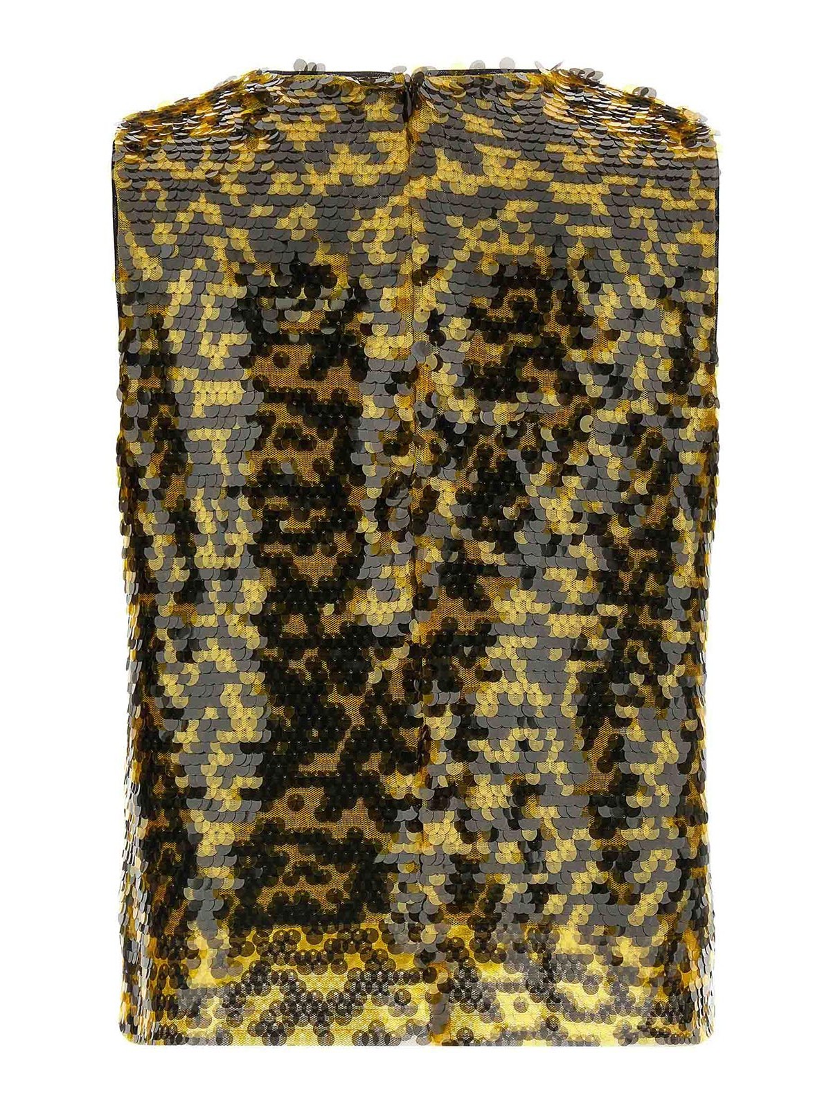 Top in tessuto 'seraphina' ricoperto di paillettes bicolore, fantasia leggermente cropped, silhouette squadrata, girocollo, chiusura posteriore con zip.