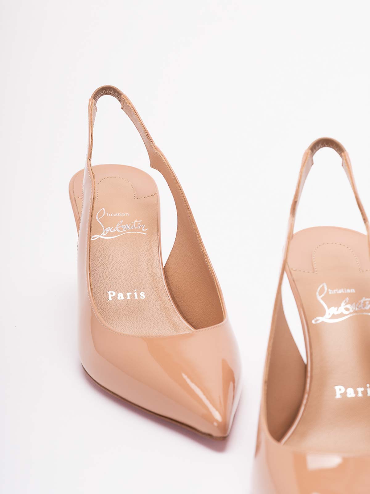 L`iconica dcollet hot chick assume una nuova forma che si ispira alla hot chick sling: caratteristici intagli a v intorno alla caviglia e stile slingback, il tacco sottile da 70 mm e le complesse impunture evidenziano tutto il savoir-faire della maison christian louboutin, questa versione, realizzata in pelle verniciata nera, conferir ai tuoi look un aspetto assolut.mes nte sofisticato.