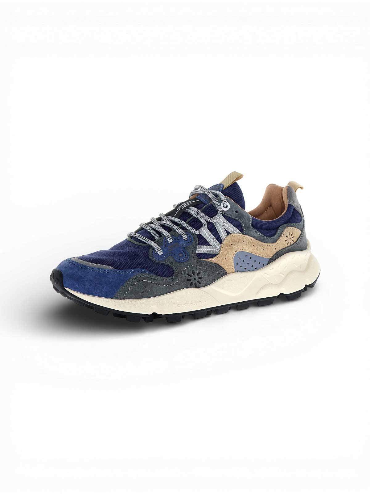 Flower mountain, yamano 3 man, sneakers in suede e tessuto tecnico, navy-grigio,, sneakers dalla vocazione sportiva realizzate con tomaia in pelle suede e tessuto tecnico, pensate per garantire comfort quotidiano e versatilit dutilizzo. il modello yamano 3 man unisce design dinamico e costruzione strutturata, mantenendo unestetica contemporanea. i dettagli si esprimono negli iconici occhielli sagomati a fiore e nellallacciatura con lacci, che assicura una calzata stabile e sicura. allinterno, la fodera in pelle e tessuto contribuisce al comfort, mentre la soletta in sughero favorisce benessere e supporto durante lutilizzo prolungato., tomaia in suede e tessuto tecnico, occhielli sagomati a fiore, chiusura con lacci, fodera in pelle e tessuto, soletta in sughero.