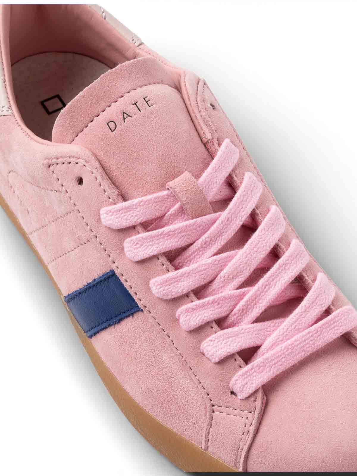 D.a.t.e. hill low block pink, sneaker bassa realizzata in camoscio colore rosa, caratterizzata da unestetica contemporanea e dettagli a contrasto. il modello hill low block mantiene una linea pulita, valorizzata da materiali selezionati e finiture distintive. sulla linguetta impressa la scritta d.a.t.e., mentre il codice e il logo quadrato sono impressi lateralmente. il talloncino posteriore in pelle rosa si abbina alla banda laterale in pelle colore bluette, creando un contrasto deciso. la suola in gomma alta 2,3 cm garantisce stabilit, completata da soletto interno rialzato di 2,5 cm per un comfort ottimale. tutti i materiali selezionati sono made in italy. vestibilita' regular., tomaia in camoscio scritta d.a.t.e. impressa sulla linguetta lacci in cotone codice e logo quadrato impressi lateralmente talloncino posteriore in pelle rosa banda laterale in pelle bluette fodera in pelle e spugna di cotone soletto interno rialzato di 2,5 cm suola in gomma alta 2,3 cm vestibilita' regular, composizione tomaia: camoscio e pelle fodera: pelle e spugna di cotone suola: gomma