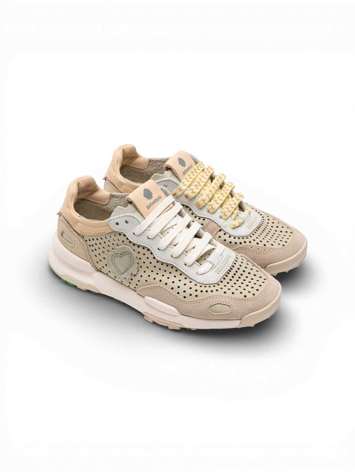 Satorisan, chacrona laser premium, urbanite green,, sneaker chacrona laser premium ispirata alle scarpe da cross-training degli anni 80, reinterpretate con un design contemporaneo e materiali responsabili. il nome chacrona deriva dalla foglia amazzonica utilizzata dalle trib indigene per connettere corpo e anima, concetto che riflette la filosofia del modello: equilibrio tra comfort, resistenza e sostenibilit. la struttura morbida e la soletta ergonomica ad alta densit garantiscono una calzata particolarmente confortevole durante lutilizzo quotidiano. la suola con disegno strutturato offre una buona aderenza su diverse superfici, mentre la costruzione robusta e i materiali selezionati contribuiscono alla durata del prodotto nel tempo., design ispirato alle scarpe da cross-training anni 80, struttura morbida e particolarmente confortevole, soletta ergonomica ad alta densit per maggiore comfort, suola con disegno antiscivolo per migliore aderenza, costruzione resistente pensata per luso quotidiano, materiali sostenibili e di alta qualit,, vestibilit, il modello veste leggermente pi piccolo: in caso di dubbio tra due taglie, consigliata quella pi grande.,, materiali,, pelle certificata leather working group (classificazione gold), cotone riciclato, lacci in rpet ricavati da bottiglie di plastica riciclate, intersuola in eva riciclata, soletta e suola in sughero, packaging riciclato e riciclabile,, cura del prodotto, pulire con un panno umido e sapone neutro. non utilizzare asciugatrice e non asciugare dirett.mes