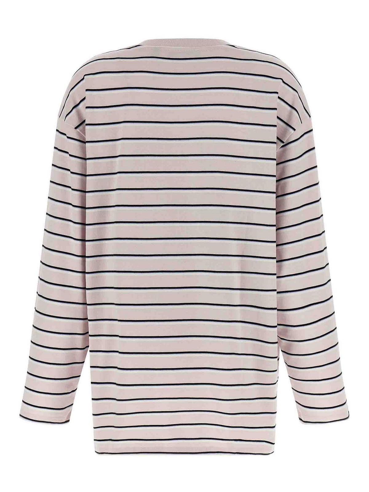 T-shirt in jersey di cotone rigato, girocollo, maniche lunghe, patch logo frontale.