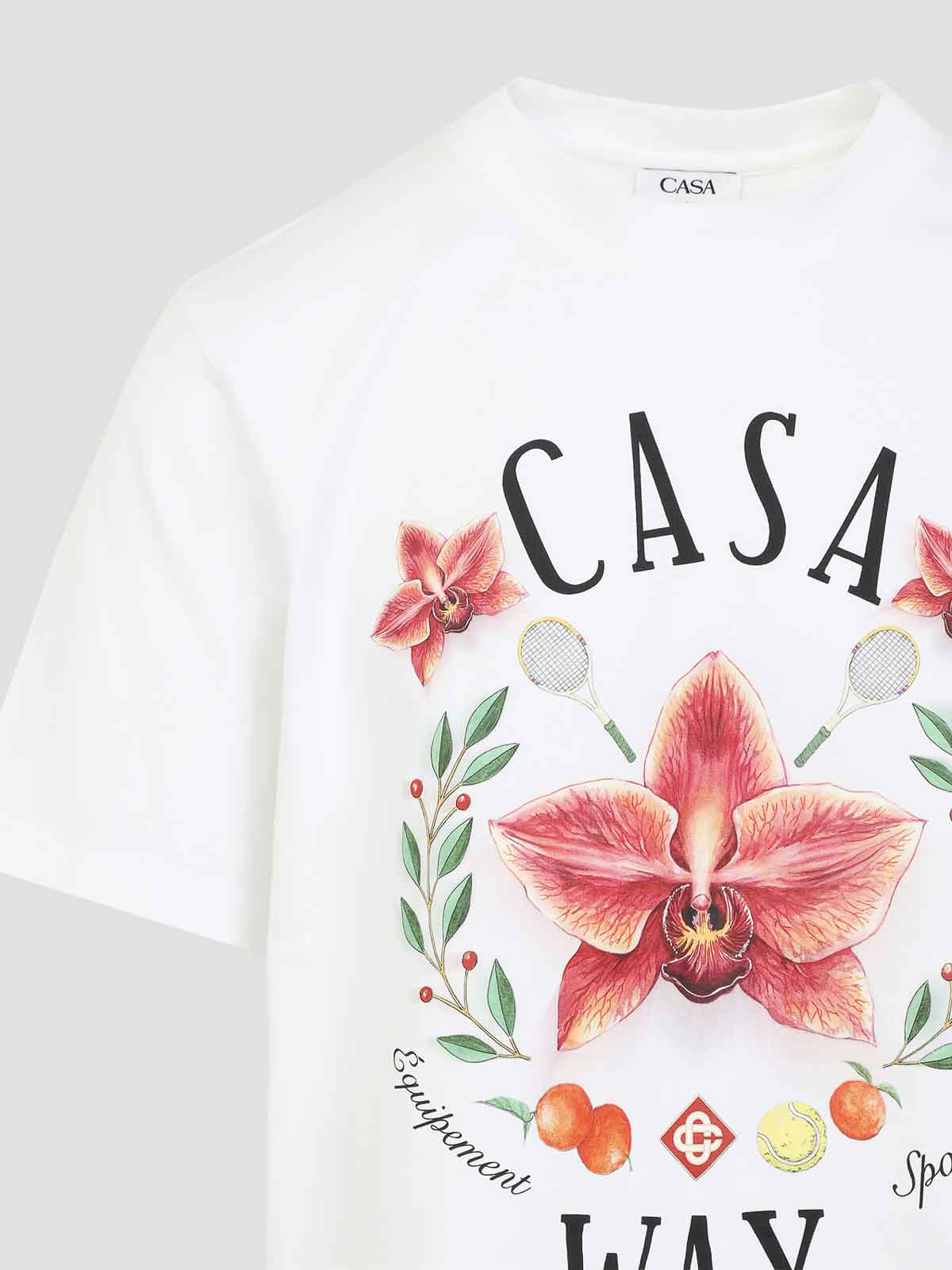 T-shirt Casablanca casa way in cotone bianco. realizzato in jersey di cotone bianco, presenta scollo tondo a costine, stampa grafica del logo e casa way sul davanti, maniche corte e orlo dritto