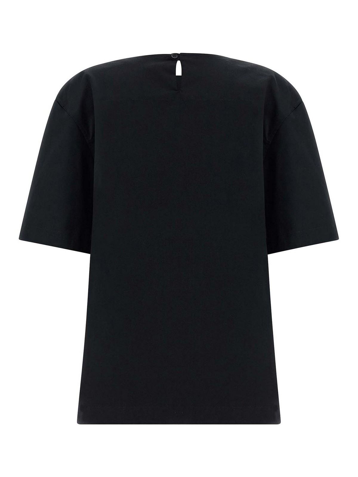 T-shirt girocollo 'dean' in gabardine di cotone rigido con chiusura con bottoni sul retro, dettaglio cut-out a goccia e maniche corte.