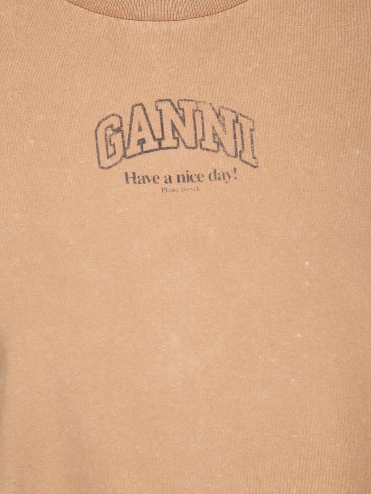 T-shirt scollo rotondo, mezze maniche, logo ganni frontale, vestibilita' oversized.