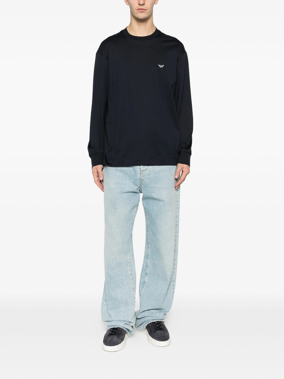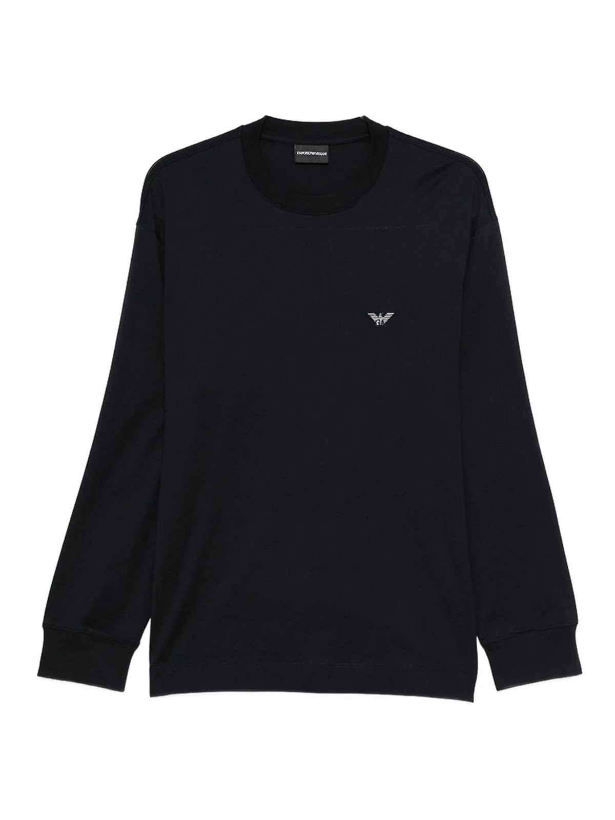 Maniche lunghe con logo tono su tono blu navy, collo tondo, polsini a coste