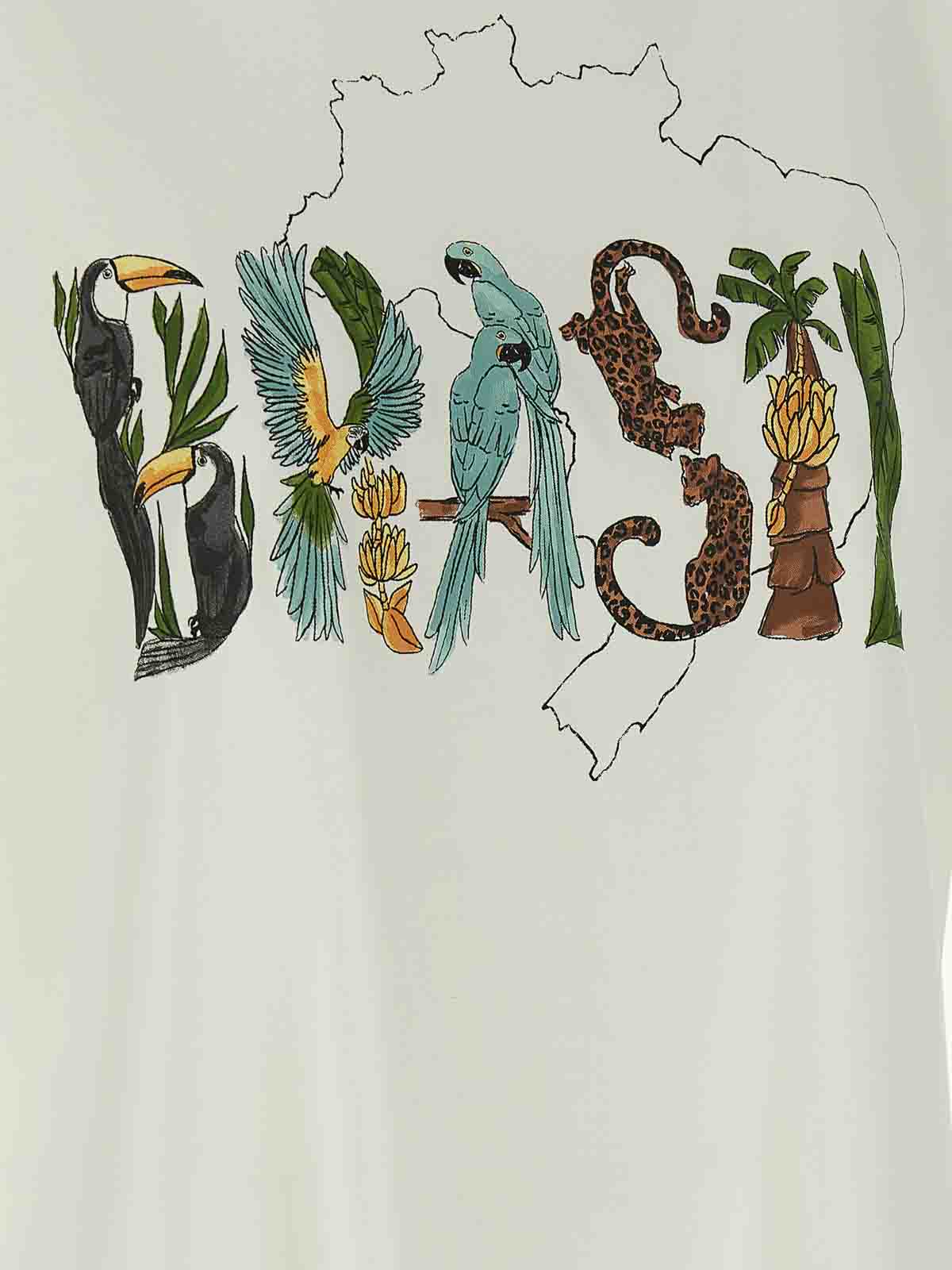 T-shirt in cotone certificato Gots con stampa frontale 'off-white brasil', girocollo, maniche corte con spalla scesa.